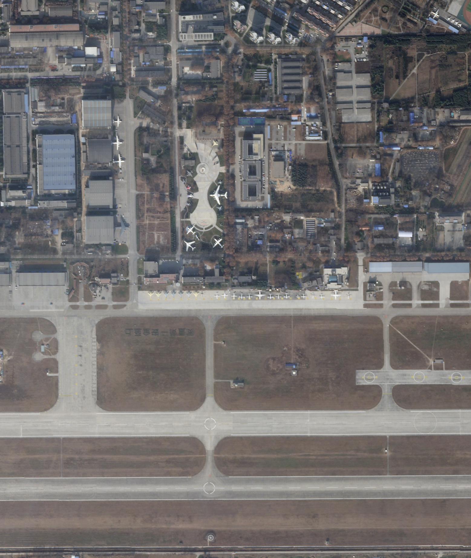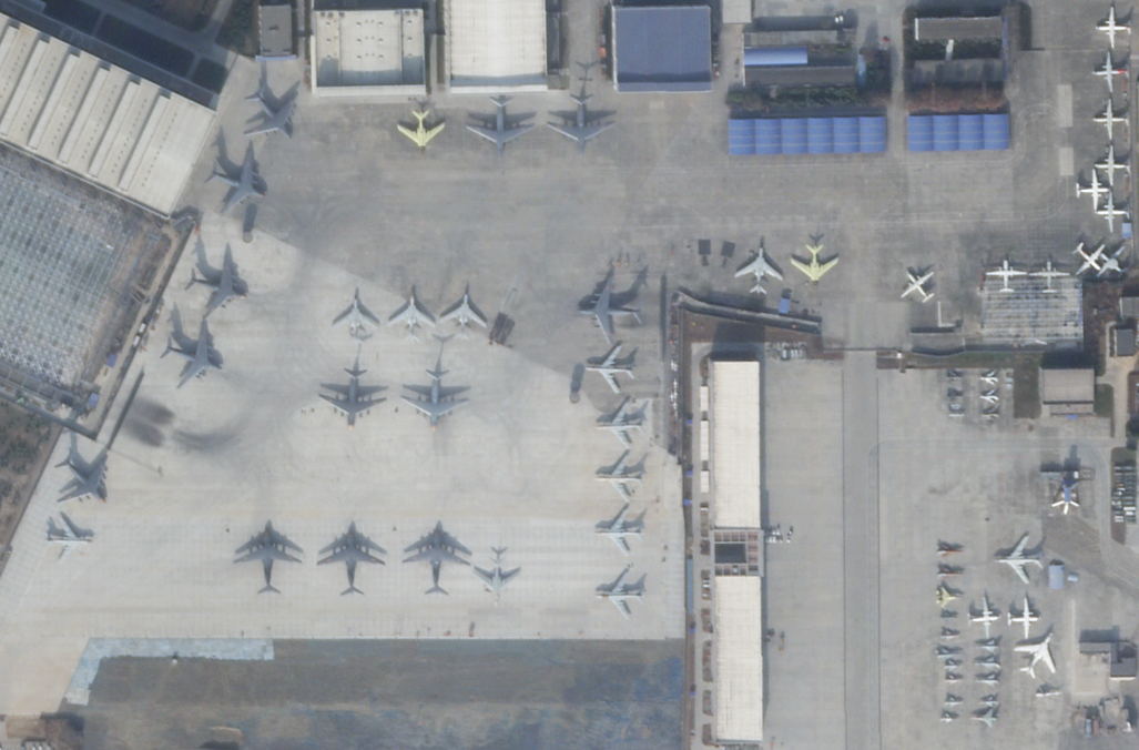 Also seen scattered about the base are 17 Xi’an H-6 bombers. Now in its drastically upgraded H-6K form, along with its derivatives, these bombers, which draw their design lineage from the 1950s Soviet Badger, are the backbone of the People’s Liberation Army’s long-range aviation enterprise and perform a large variety of roles beyond traditional bomber and cruise missile delivery missions. These include acting as the mothership for outsized high-speed drones and massive air-launched ballistic missiles. Until China’s stealthy bombers come online in the future, the H-6 will represent the tip of the airborne strategic spear for the PLA and clearly Beijing is investing in the platform accordingly.