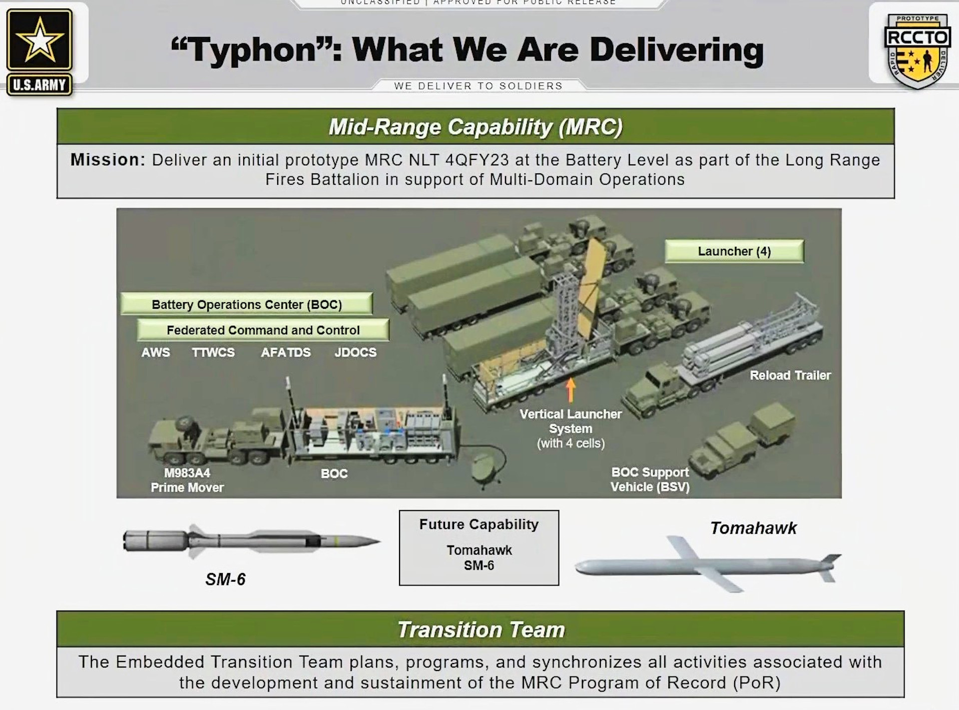 The Army’s Rapid Capabilities and Critical Technologies Office (RCCTO) released the new information about the planned composition of its first Mid-Range Capability (MRC) unit during a presentation at the Association of the U.S. Army’s annual conference in Washington, D.C., which opened on Monday and wraps up today. The service has also disclosed that the complete MRC weapon system is now named Typhon, an apparent reference to the deadly giant serpent from Greek mythology.