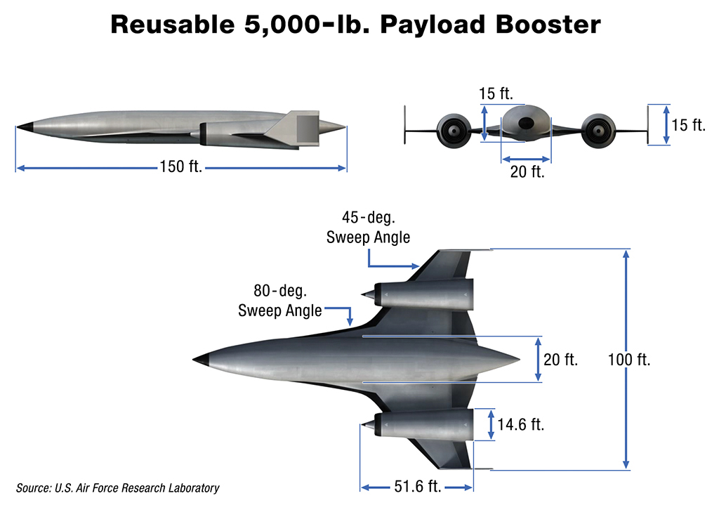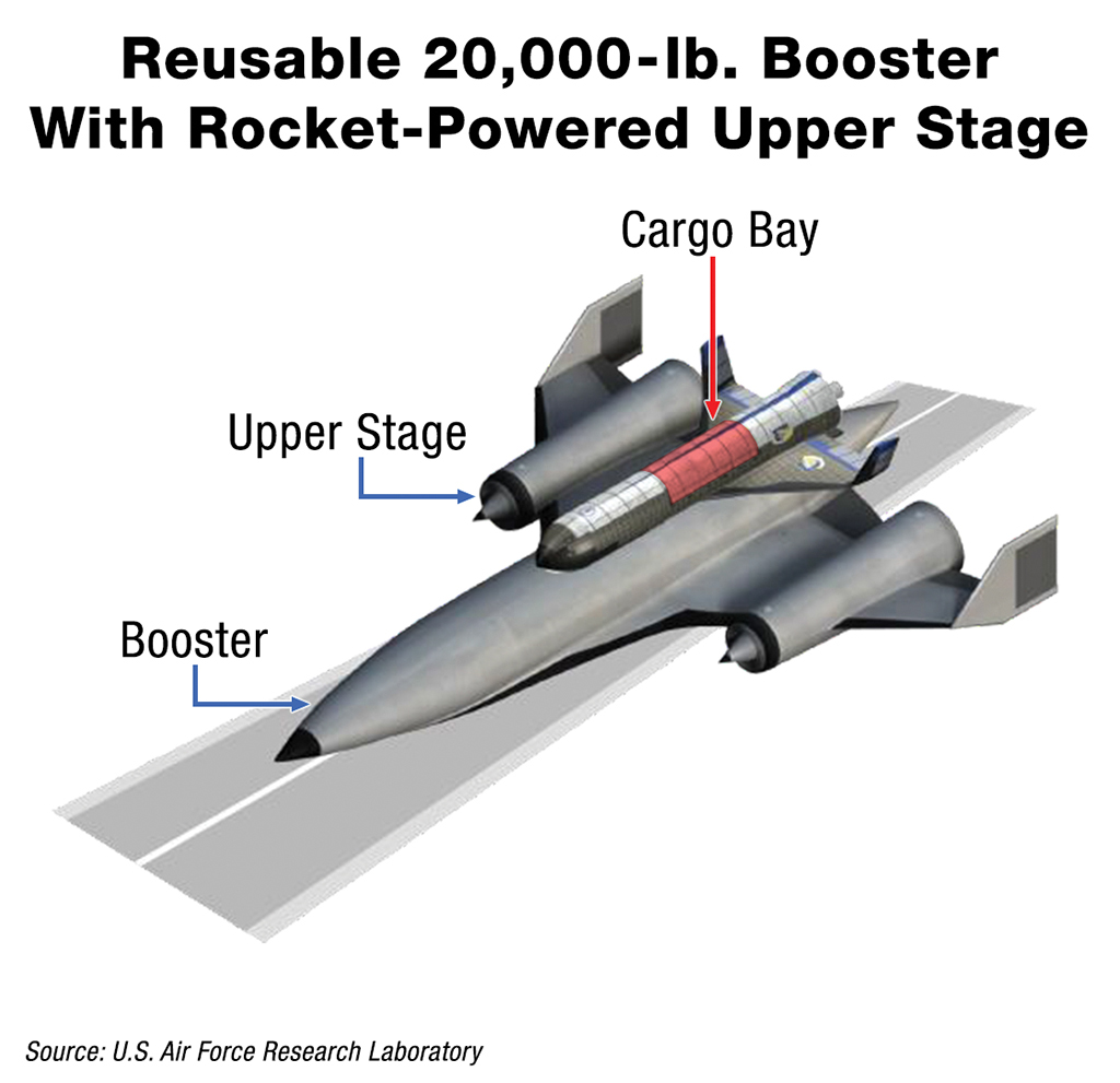 Also interesting is that this two-stage-to-orbit concept, which AFRL is collaborating with SpaceWorks Enterprises to develop, leverages two distinct aircraft payload configurations—one partially reusable and one totally reusable.