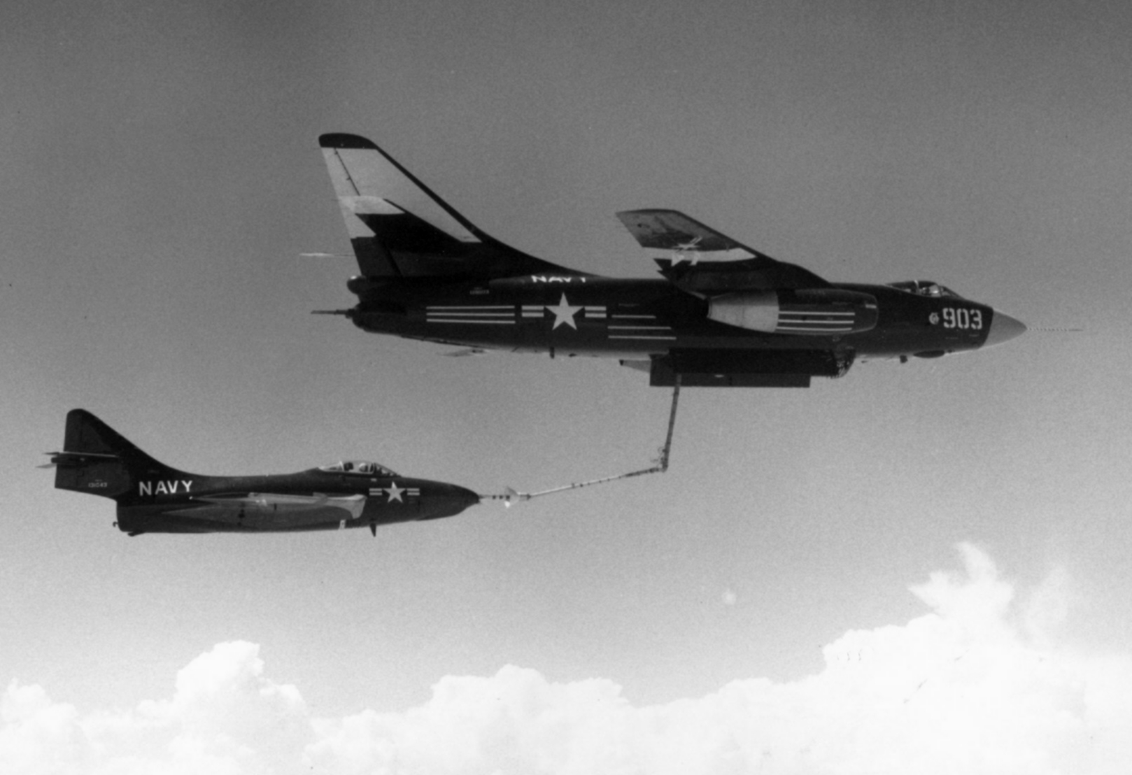 The first generation of jet fighters, and especially those that were intended to operate from carriers, were typically fairly compact and their engines thirsty. Aircraft designers faced a struggle to pack everything — pilot, engine, fuel, armament, etc. — into a small airframe.