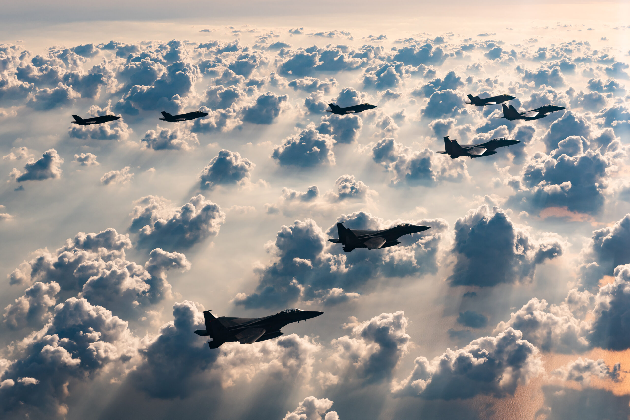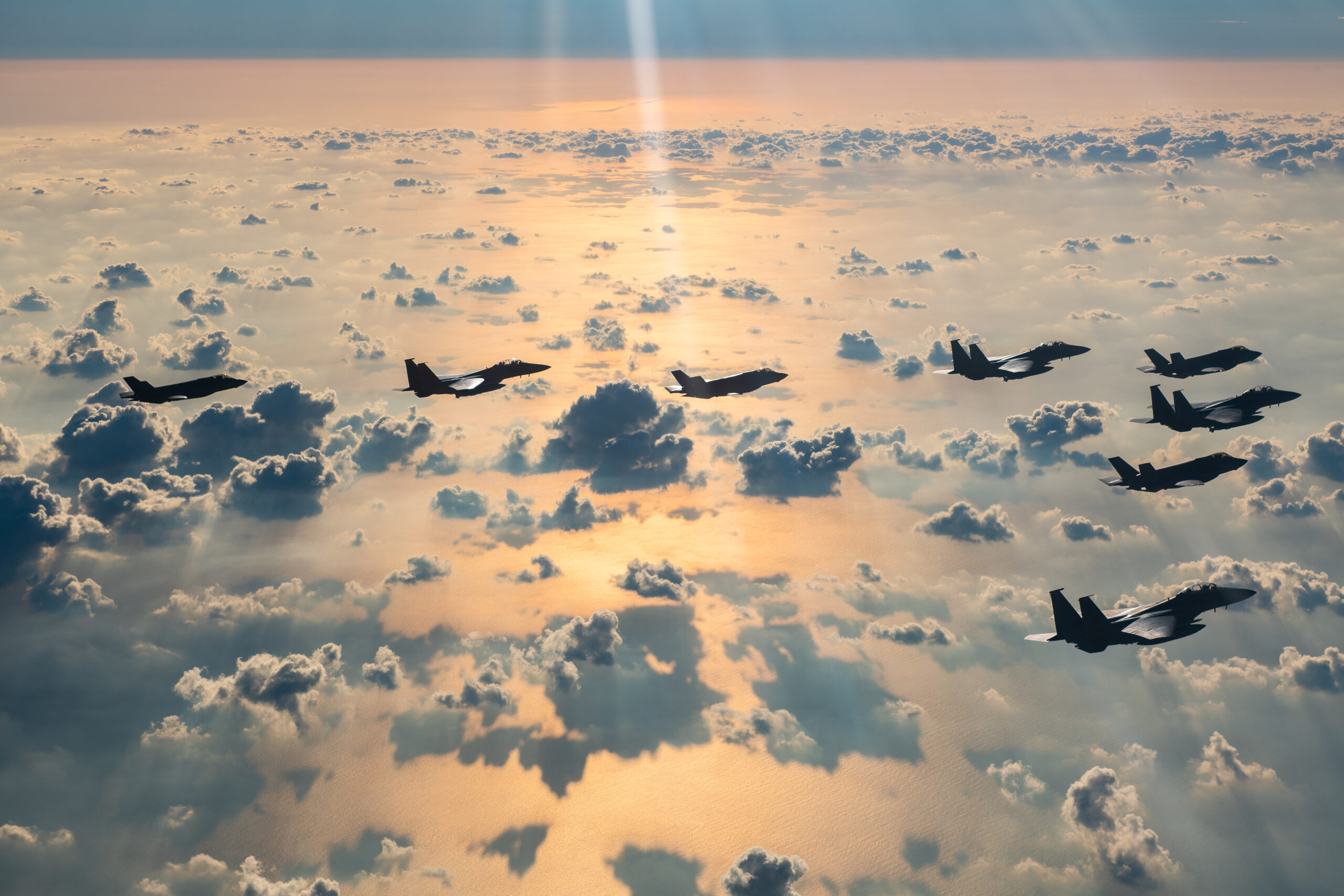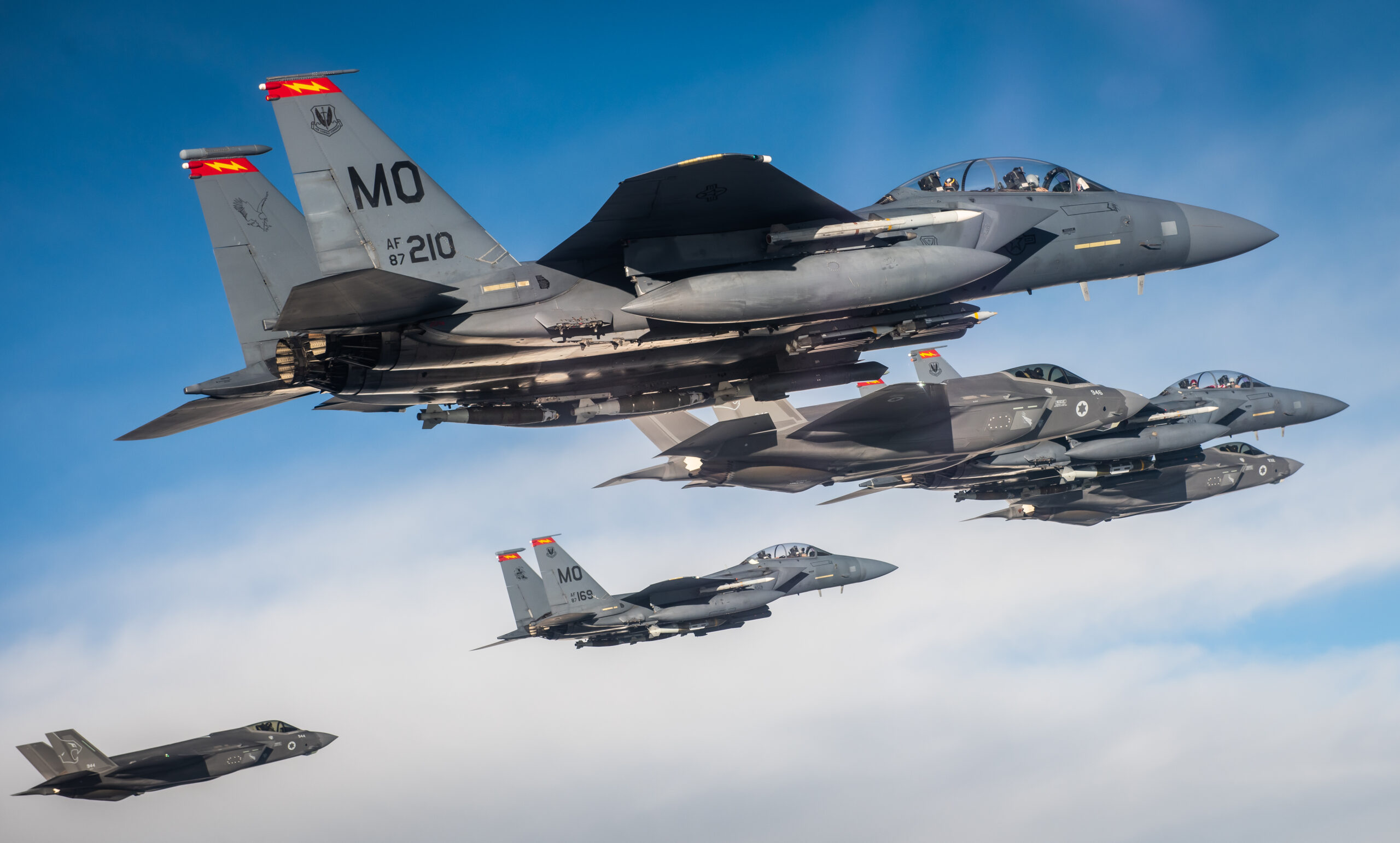 Defensive armament for the F-15Es consists of both radar-guided AIM-120 Advanced Medium-Range Air-to-Air Missiles (AMRAAMs) and heat-seeking AIM-9X Sidewinder air-to-air missiles.
