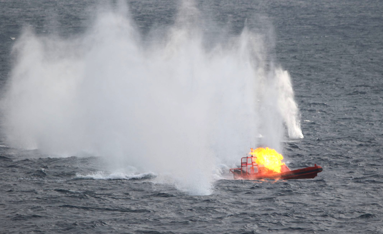 Phalanx is a self-contained, turreted close-in defense system armed with a six-barrel M61 Vulcan cannon. The systems have their own search and track radars and electro-optical and infrared cameras for target acquisition and engagement, and can be used in manually operated or autonomous modes. The Phalanx’s M61 can be set to fire at one of two rates, 4,500 or 3,000 rounds per minute, for use against aerial targets such as cruise missiles and aircraft or “asymmetric threats” (which includes “littoral warfare threats” like small boats), respectively, according to the Navy.