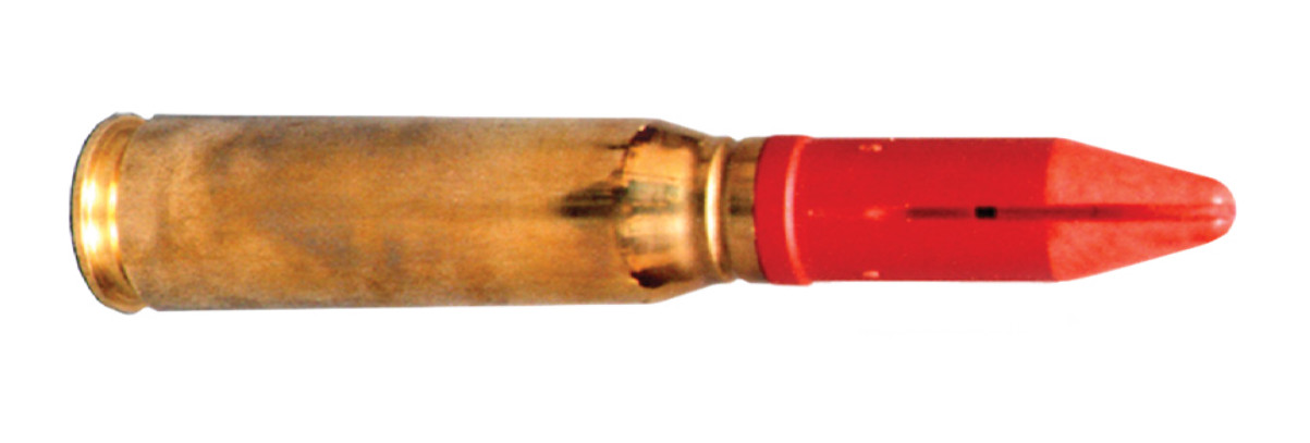 After firing, the sabot breaks away and the tungsten projectile continues onward. The discarding sabot design increases the velocity of the projectile, helping it close the distance to the target faster and increase the force of impact.