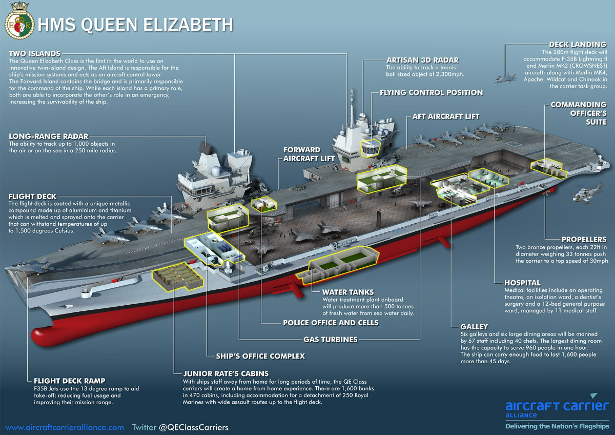 “They are the biggest warships ever built for the Royal Navy,” the Royal Navy’s official website for Queen Elizabeth declares. “Four acres of sovereign territory, deployable across the globe to serve the United Kingdom on operations for 50 years.”