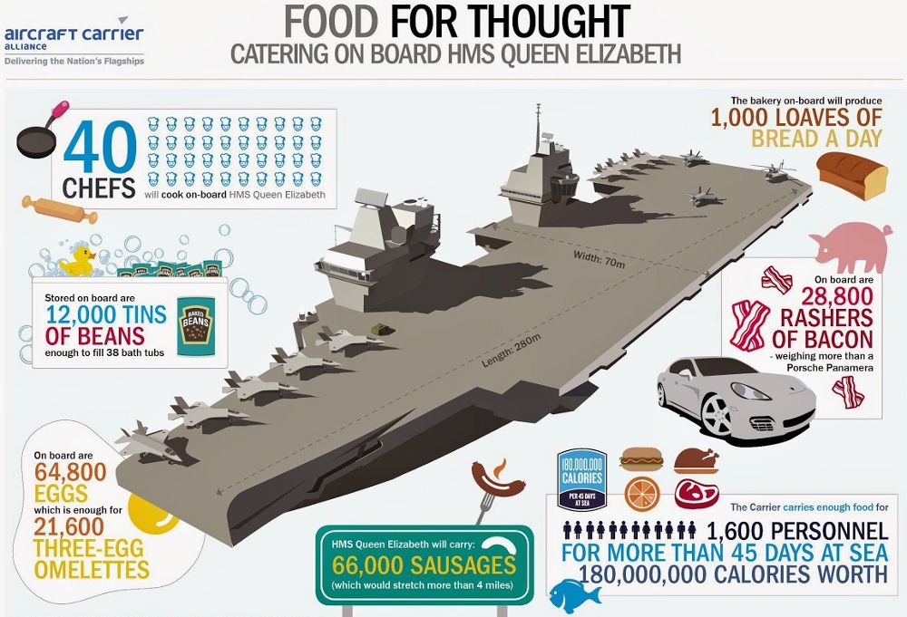 Perhaps this might help explain why ACA has been particularly proud of the ship’s ability to feed the full crew complement. An official infographic noted each carrier would be able to store 64,800 eggs, 28,800 strips of back, and 12,000 cans of baked beans, key components of a traditional English breakfast. The ability of the ship’s kitchens to churn out meals for the 700 initial crew within 90 minutes – or just 45 minutes with personnel at “action stations” – was among nine major official figures BBC cited in its profile of the ship’s first sea voyage. With its key capabilities under seemingly perpetual review, there might not be much else to talk about.