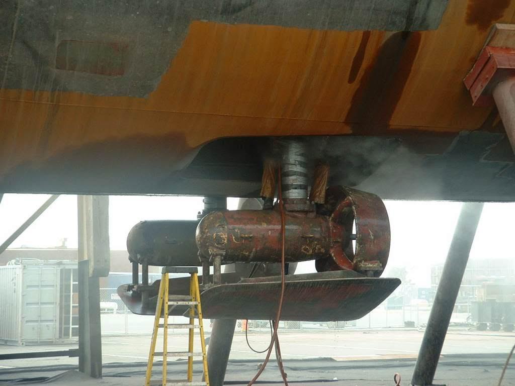 Referred to officially as Auxiliary Power Pods (APPs), these sci-fi looking units could be extended to propel the ship at speeds of up to roughly six knots without the main screw providing any thrust and even without the ship’s gas turbines running at all. The APPs run off electrical power from the ship’s diesel generators and are located roughly below the front of the ship’s forecastle.