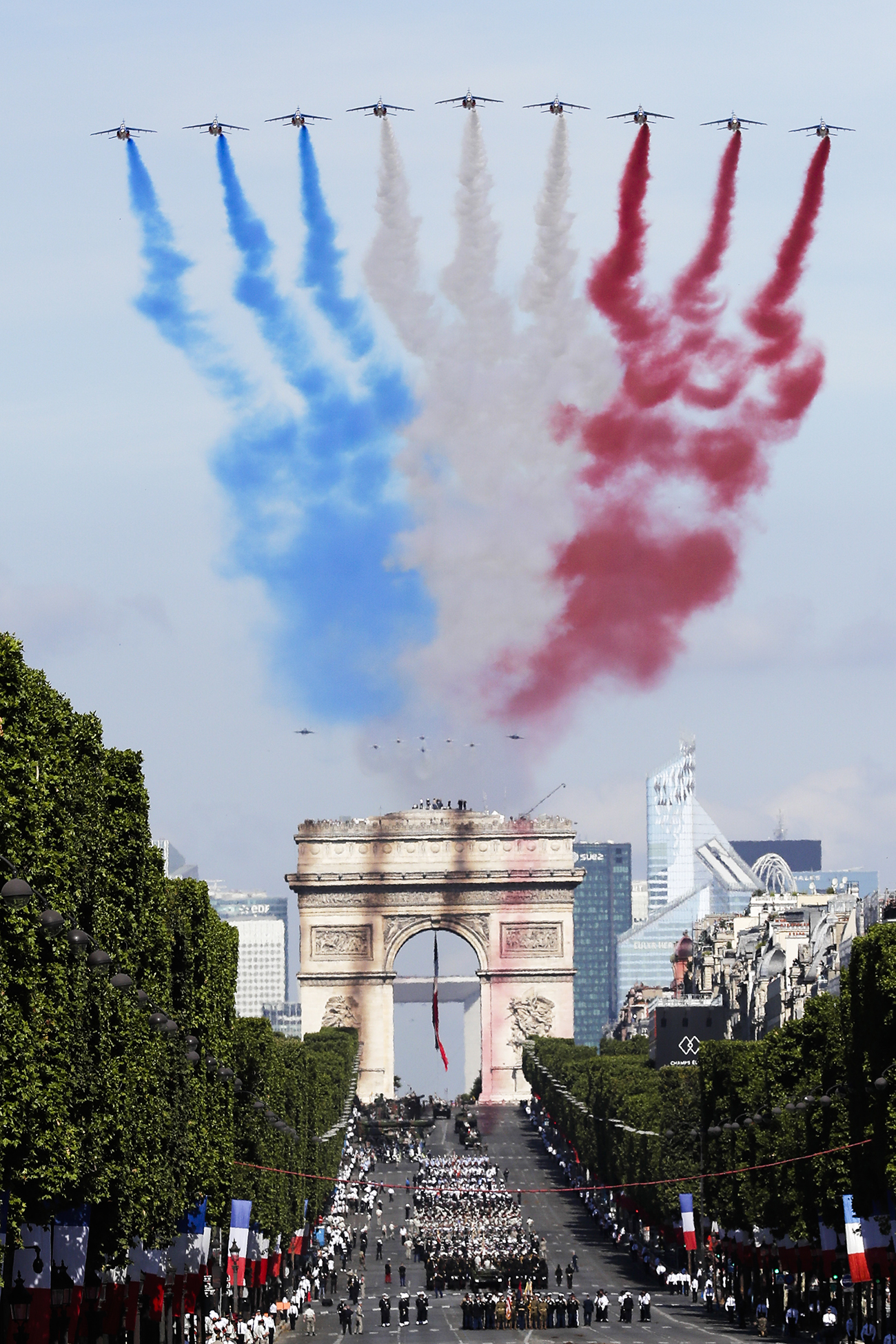 A composite group made up of various French military bands put on the spectacle, belting out the Robots’ signature single “Get Lucky” as the highlight of a broader medley. It was a jovial and creative moment, although an untraditional one, for such a parade, and the band’s energy and the song’s up-beat pop groove was not lost on the crowd or the French President.