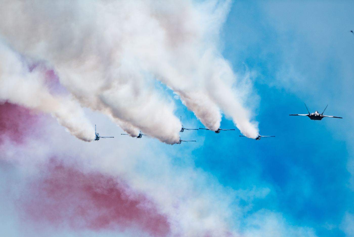 The flyover for the parade was also pretty spectacular. With the Patrouille de France, USAF Thunderbirds, and a pair of F-22s kicking it off. The Thunderbirds and the F-22 will be performing across the Channel at the Royal International Air Tattoo this weekend.