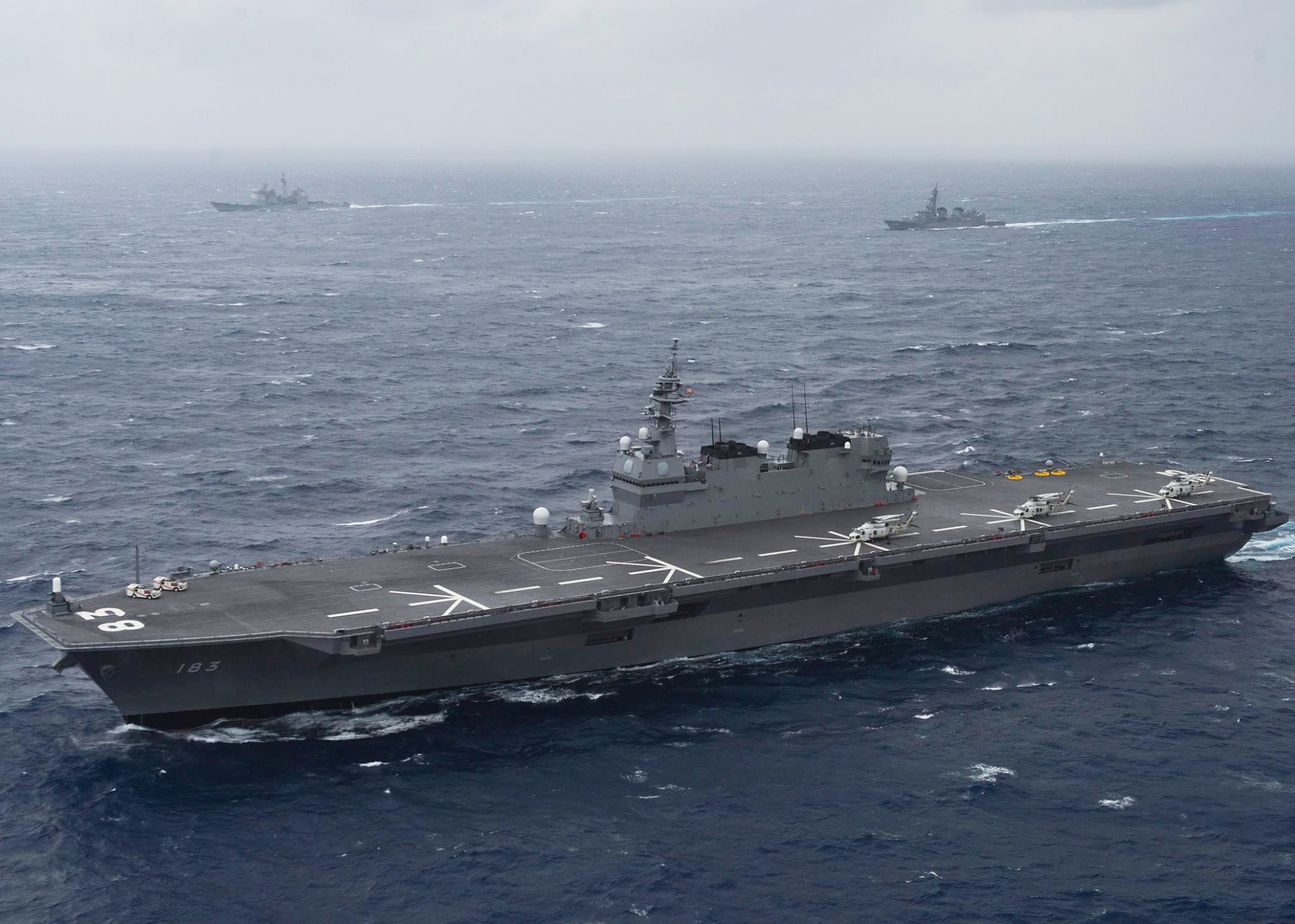 Japan’s Izumo does not operate fixed-wing aircraft, it is a helicopter carrier. But that doesn’t mean it isn’t highly relevant to coalition operations in the region. The ship is loaded with SH-60J/K anti-submarine warfare helicopters. So its primary mission is anti-submarine warfare and to provide screening against sub-surface threats for a coalition battle group. It does this using its own assets and by coordinating an anti-submarine warfare “game plan” with other assets in the flotilla and ashore.
