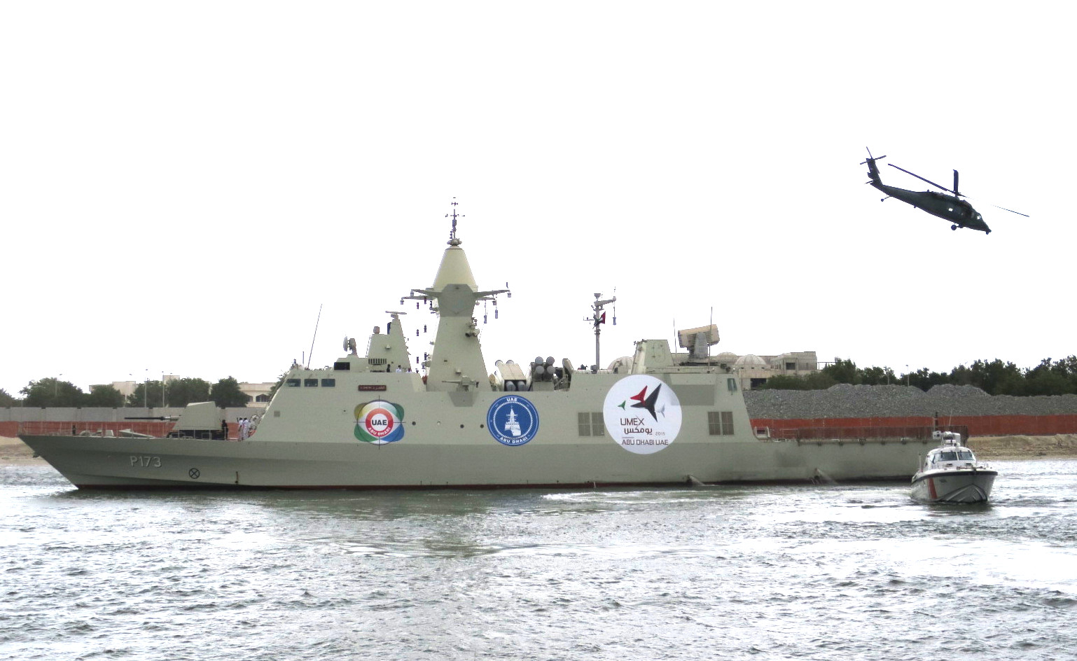 The UAE’s Navy operates a number of corvette-type ships, a category that some refer to as frigates. The largest of these are Italian-made Abu Dhabi-class, which displace 1,650 tons and are armed with Exocet anti-ship missiles, torpedoes, a 76mm main gun, and other smaller weapons. The Emiratis also have six Baynunah-class and two Muray Jib-class types, both of which are smaller and displace less than 1,000 tons.