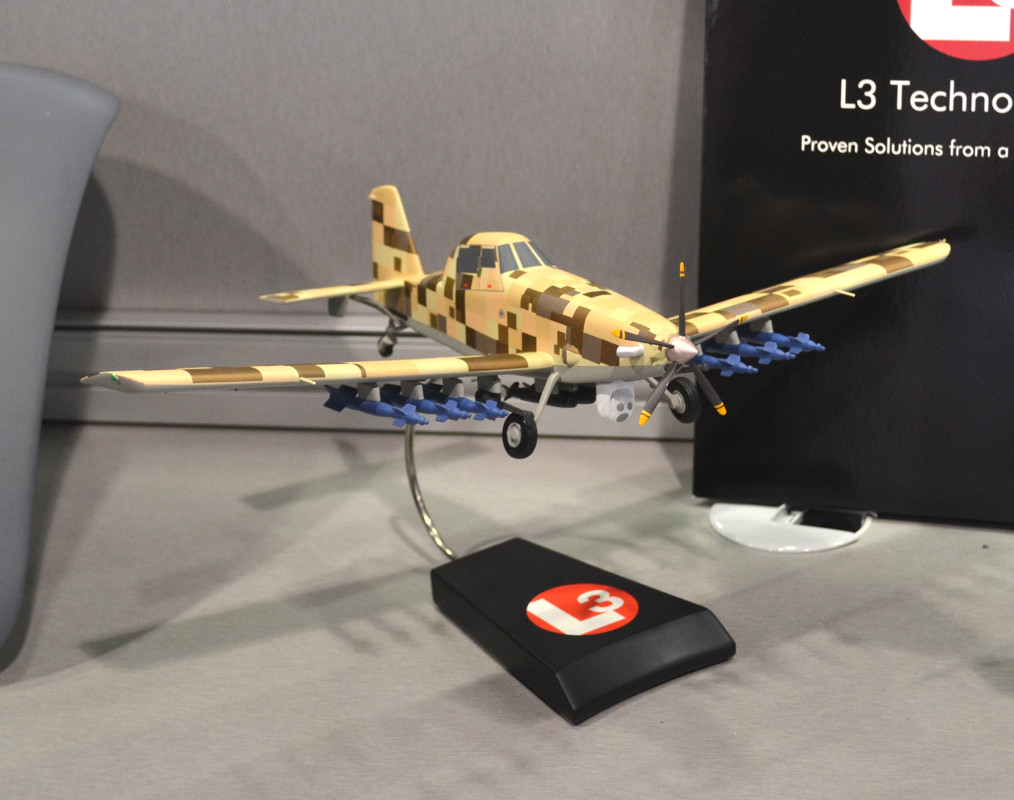 L3 brought two models of the AT-802L Longsword, a modified Air Tractor AT-802 crop duster, each with a different camouflage scheme. This aircraft recently took part in the Air Force’s OA-X experiment. Sierra Nevada and Textron also had models of the A-29 Super Tucano and Scorpion light attack jet respectively, the two firms entrants into the light attack tests. Textron had submitted the AT-6 Wolverine, as well.