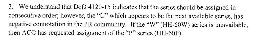 In 2010, the Aeronautical Systems Center – now called the Air Force Life Cycle Management Center – asked for the designation HH-60W for the new helicopters, and if that was unavailable, for HH-60P, because of an unspecified “negative connotation” surrounding the letter U in the personnel recovery community. Of queries to various Air Force command and and sources have turned up no answers, so if you know why, feel free to let us know! The Air Force’s top headquarters, which has the final say on these decisions rejected the request and stuck with HH-60U. However, the service is separately buying new combat search and rescue helicopters, which finally have its preferred “W” nomenclature.