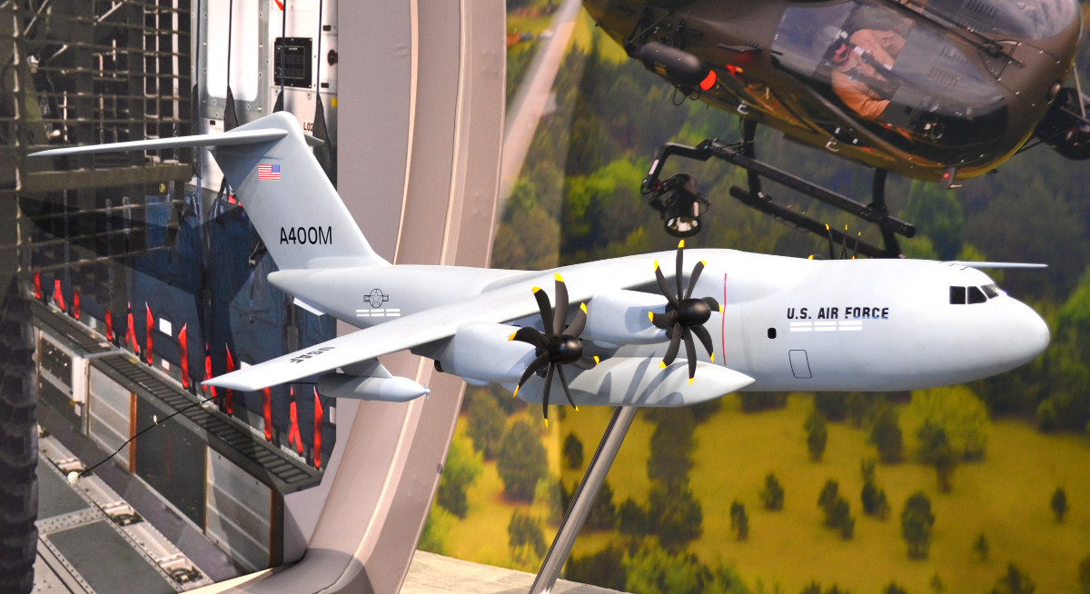 Other contractors seemed to have arranged their displays without any particular program in mind, with an eye toward fulfilling specialized requirements, or in an apparent desire to draw the attention of the many foreign military personnel in attendance. For instance, Airbus had a large model of its A400M airlifter outfitted as a tanker with a refueling pod for the probe-and-drogue system under each wing and painted in fictional Air Force colors. The European aviation consortium has pitched the aircraft to the Air Force in the past and recently delivered tanker variants to the German Luftwaffe, but there doesn’t appear to be a existing American requirement for such a plane.