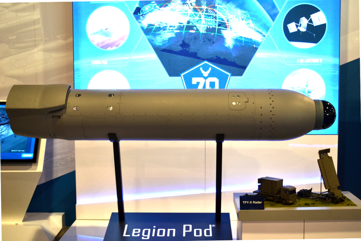 Lockheed Martin had the Legion Pod on display at its booth. On Sept. 19, 2017, the company announced the Air Force had chosen this system as the winner of a competition to add infrared search-and-track (IRST) capability to its F-15C Eagle fighter jets. In addition to the IRST functionality, the pod is modular, meaning that the Air Force could decide to add additional sensors or other equipment, like sensors or data-links, to potentially make the older Eagles even more capable.