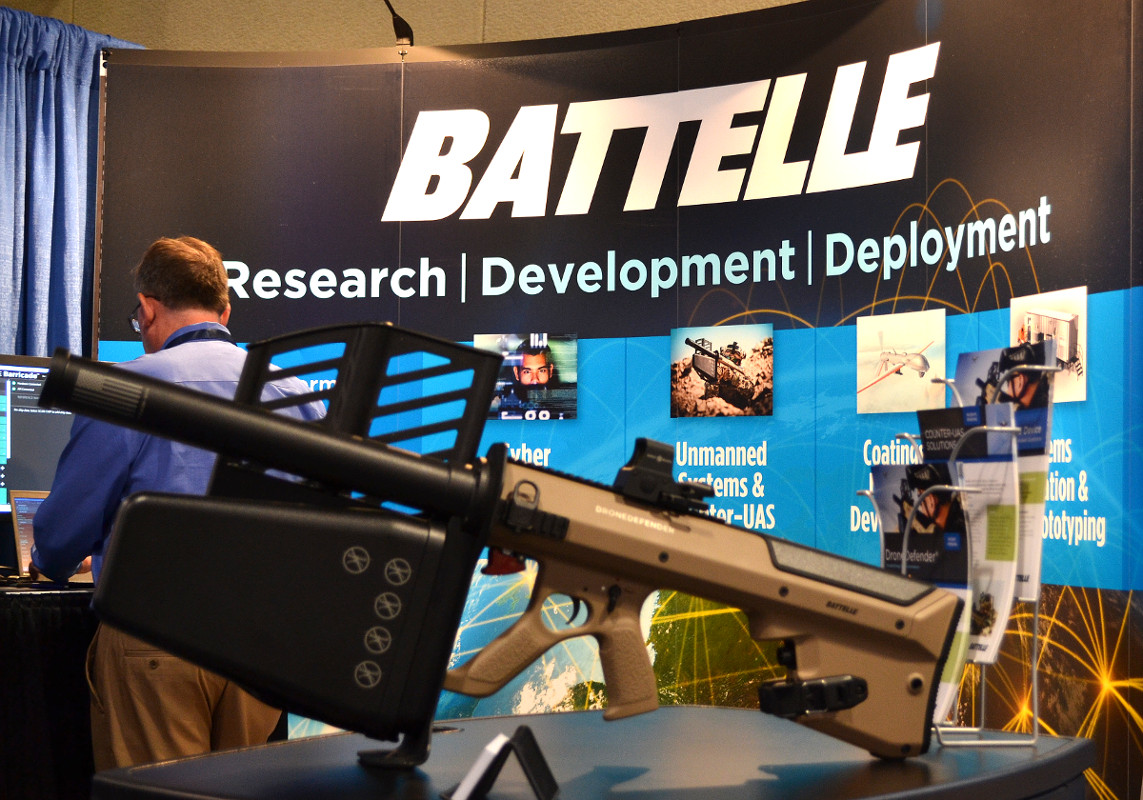 Many of these devices, including the one from Battelle seen below, look and handle similarly to standard combat rifles. The firm’s mock up had a number of “kill” markings, but when we asked, the representative at the booth said they were unfortunately only for show and did not reflect any successes in tests.