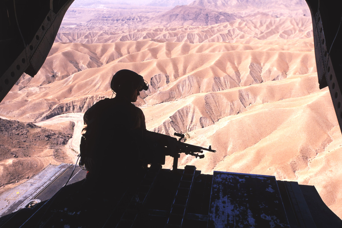 “Remember to put your head down when they start shooting at you!” a grinning Sergeant First Class Rick Scavetta said in late September 2005. Rick, the media chief for Combined Joint Task Force 76 (CJTF-76), had just dropped me off on the southern end of Afghanistan’s Bagram Airfield for the start of my first-ever combat embed. I lifted my photography gear and backpack out of his pickup truck and hiked across the concrete apron toward my journey’s next ride, a CH-47D Chinook helicopter. “Have a nice flight!” Rick yelled over the THWACK-THWACK-THWACK of spinning rotors and the screams of two turboshaft engines of the “bird” that idled just one hundred feet from his truck.