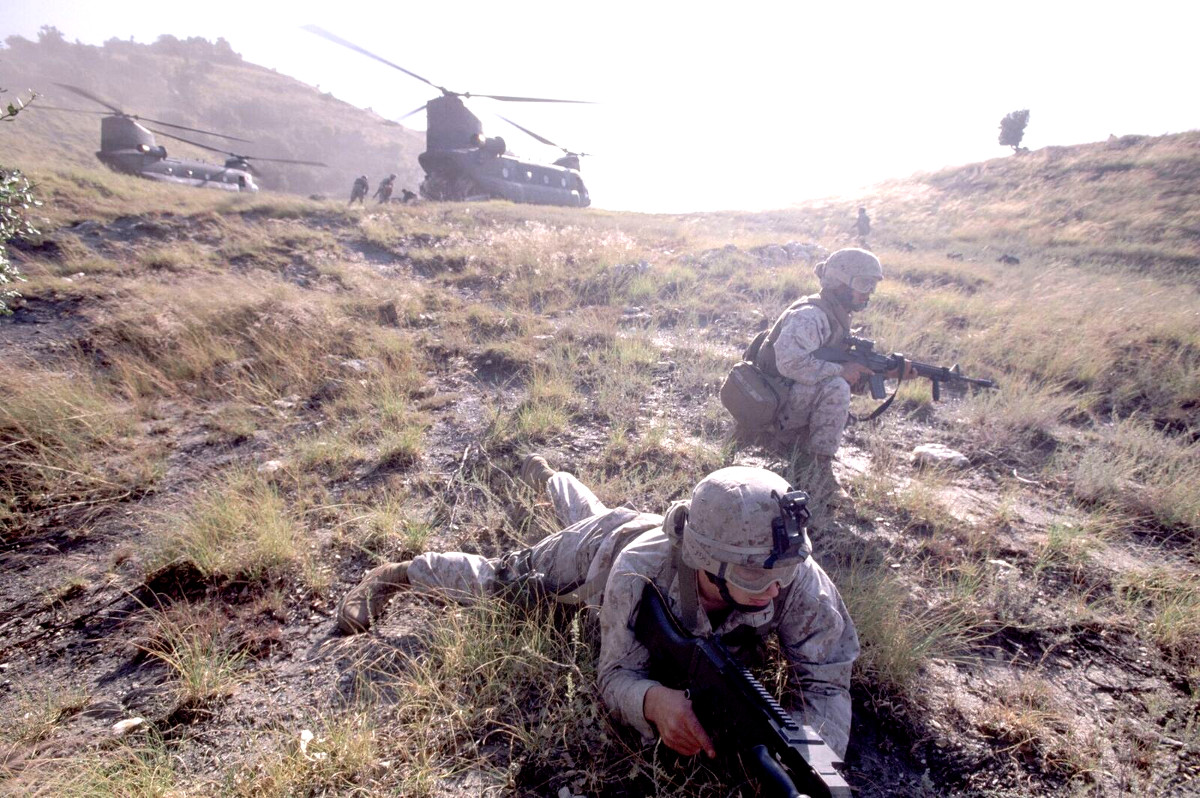 With all personnel and gear offloaded, and with an A-10 Thunderbolt II “Warthog” and the two Apache gunships flying high and low overhead, the Chinooks lifted off and disappeared down valley. Despite the heavy loads, the high altitude and difficult terrain of the location in the Hindu Kush Mountains, and the warm air of late summer, which degrades a helicopter’s performance similar to high altitude’s effect, the insertion proceeded flawlessly.