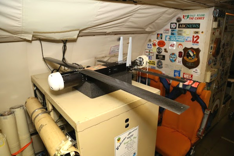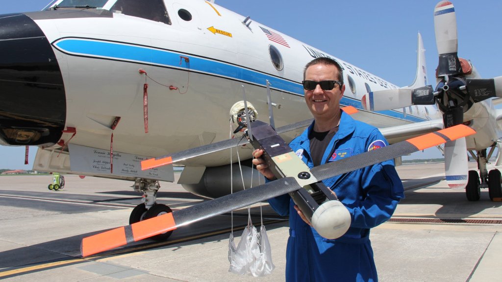 NOAA’s WP-3Ds, originally Navy sub hunters, drop the unmanned aircraft from the plane’s repurposed sonar buoy launchers near the rear. Previously, scientists would release dropsondes, basically small air-droppable and expendable pods carrying similar sensors, from these tubes.