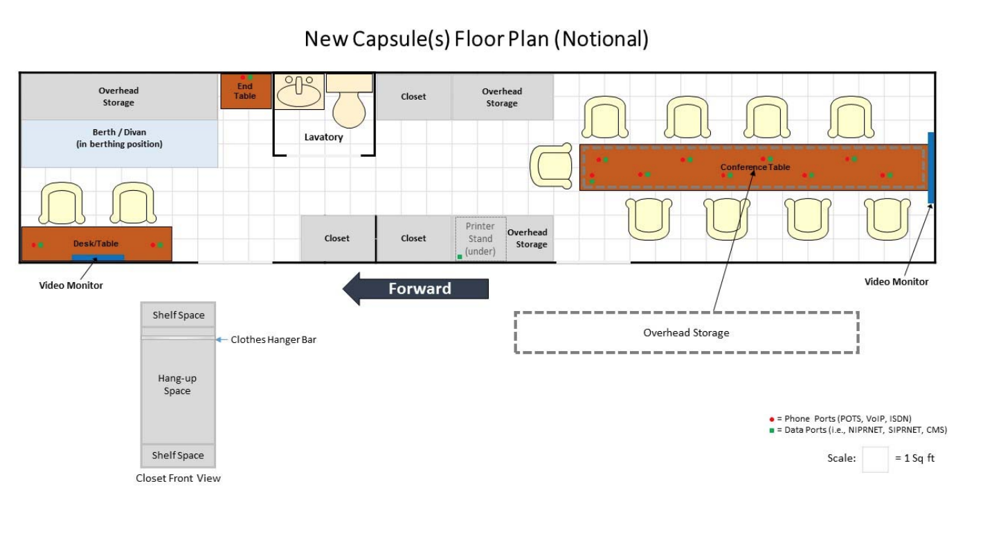 The program was renamed the Roll-On Conference Capsule (ROCC) in 2017 and an official request for proposal was filed last June. The system could be used for more extensive command and control purposes than just for carting VIPs and commanders around, even working as a staffed mobile command center during specific operations or emergencies. The official statement of work attached to the program opens with the following: