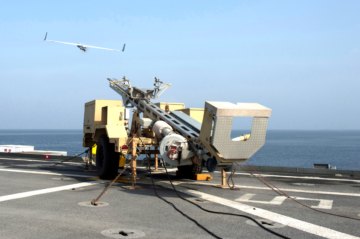 She continued to have her fairly large flight deck at the rear, able to accommodate large helicopters, including the Navy’s MH-53E Sea Dragon mine hunters and the Army’s CH-47 Chinook transports. She had no manned aircraft permanently on board, but carried a compliment of small Scan Eagle drones to provide additional situation awareness over the water or even on land if she got close enough to shore. This was the first time the Navy had deployed Scan Eagle on a ship and in 2013, the unmanned aircraft flew more than 1,500 hours of surveillance missions, a U.S. Fifth Fleet public affairs officer told me in an Email in 2014.