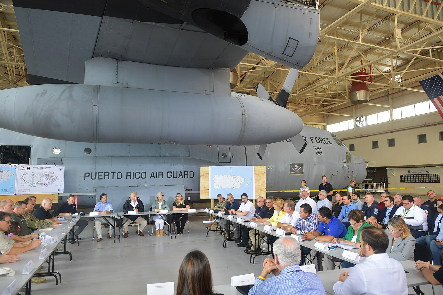 In what turned out to be a bizarre congratulatory set piece presser of sorts under the wing of a Puerto Rico Air National Guard C-130, the 45th President of the United States suddenly went off track and began talking about the F-35 Joint Strike Fighter—an aircraft that has zero to do with horrible devastation, squalid living conditions, or recovery efforts on the storm ravaged island.