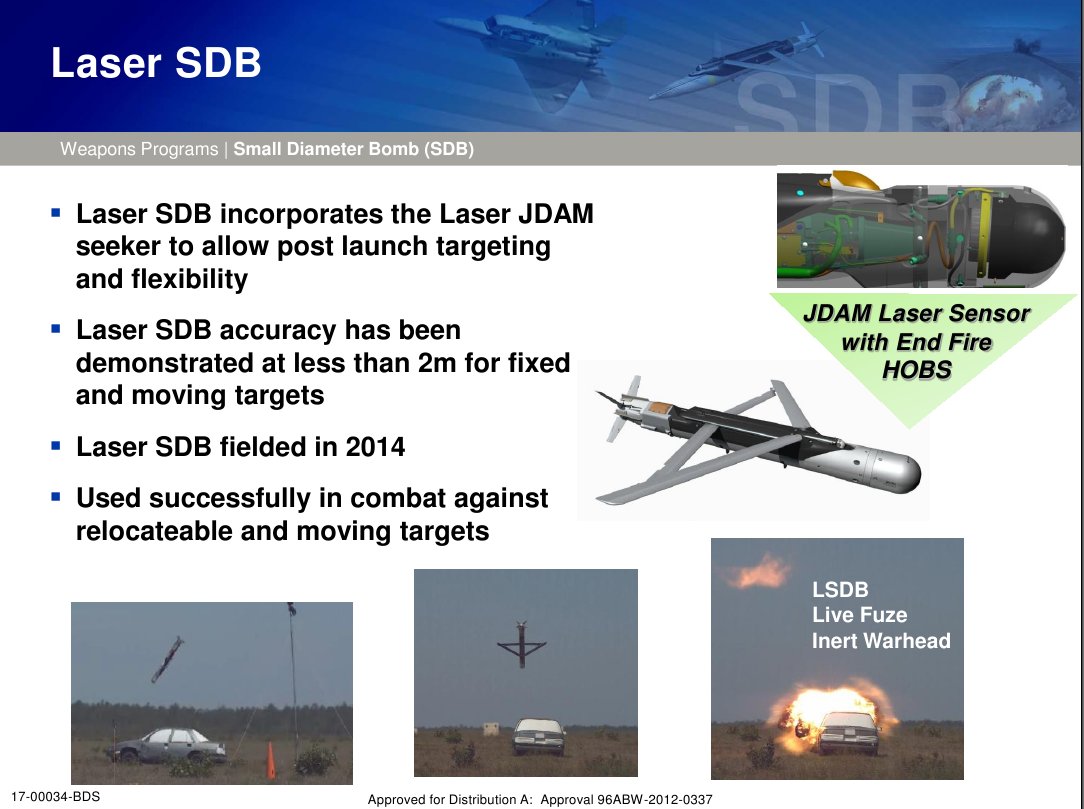 The LSDB was already a significant upgrade that also included the necessary software to properly calculate how far ahead of a moving target the bomb has to fly to hit it, known as a “laser-lead” capability. The INS/GPS-directed SDB had no ability to hit moving targets.