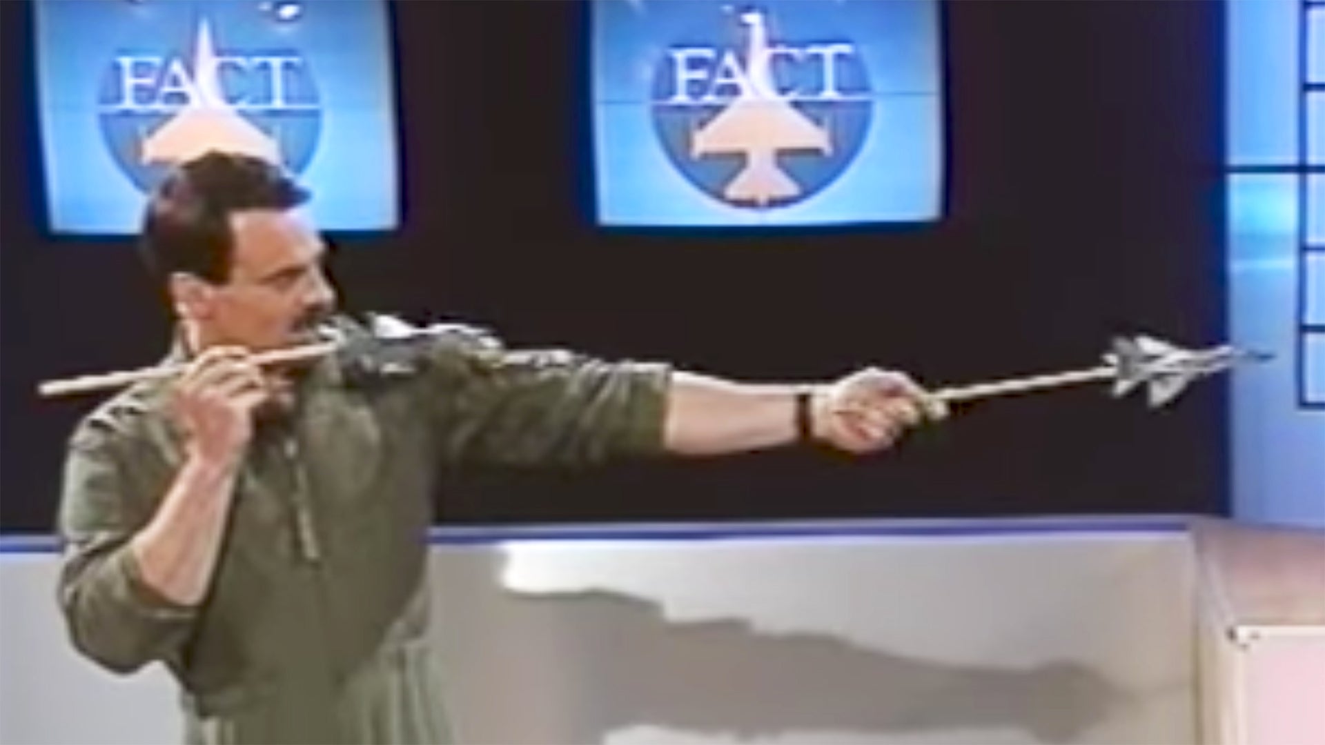 The very well cast F-16 instructor pilot and host, Pete “Boomer” Bonanni, does an outstanding job at describing Basic Fighter Maneuvers (BFM) tactics, and he even uses that “cutting-edge” tele-illustrator in the process. The “students” in their flight suits are pretty hilarious looking, but they do help with filling out the presentation. Overall the entire time capsule of a video is really worth watching, both for nostalgic laughs and for brushing up on your BFM knowledge base.