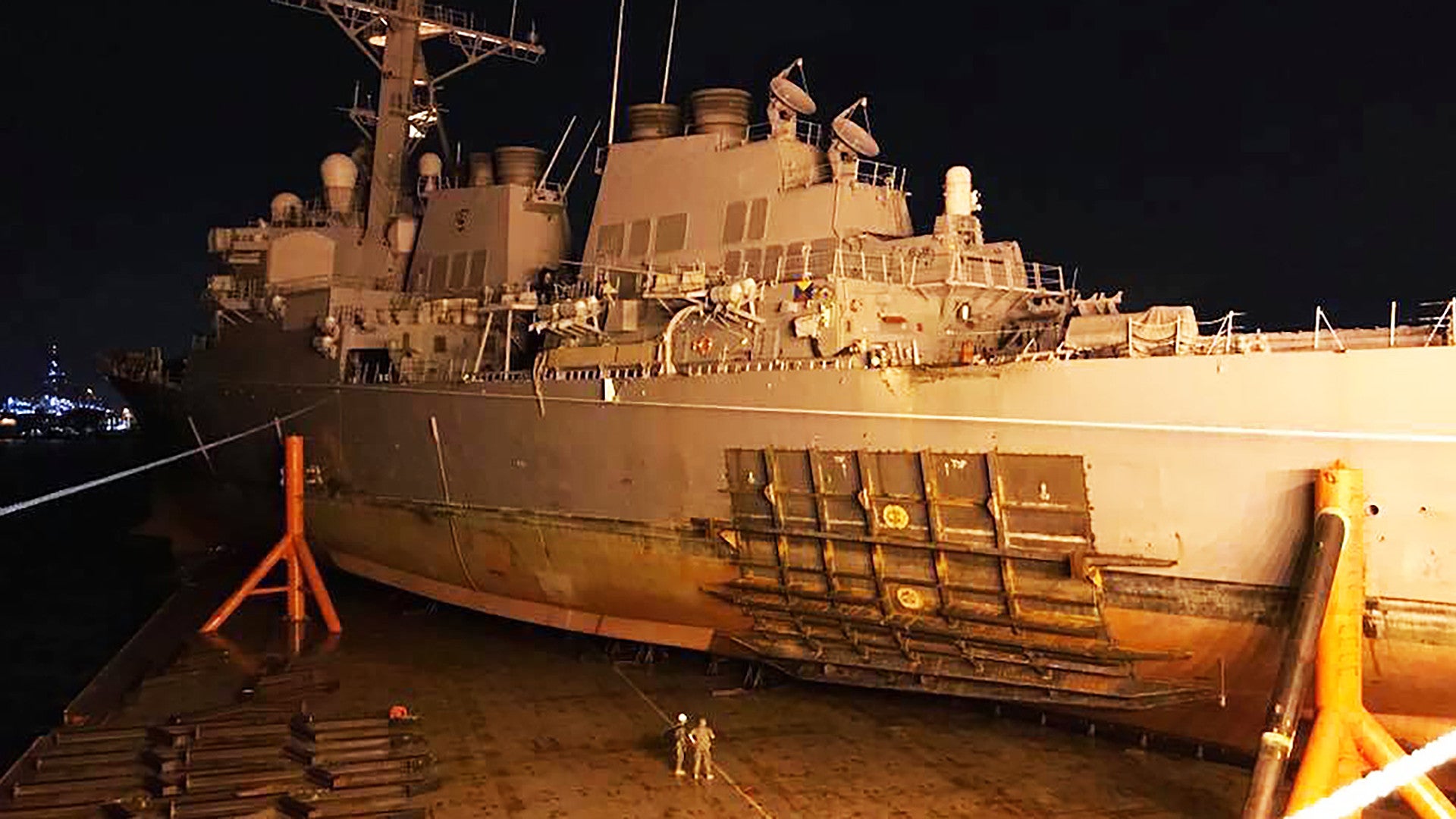 To add insult to injury, the McCain suffered a new crack in her hull while the heavy lift ship M/V Treasure was transporting the destroyer back to Japan for repairs. Treasure subsequently diverted to the Philippines so officials could inspect the new damage.