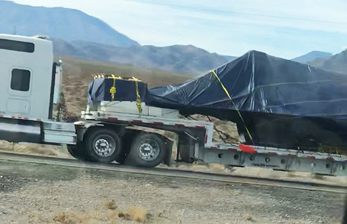 Photos have emerged of an heavily wrapped F-117 fuselage being hauled on a flatbed truck. The sighting occurred yesterday, near Creech AFB, alongside the Veterans Memorial Highway (U.S. Route 95). The highway directly connects Tonopah and Las Vegas. Tonopah Test Range Airport is where the F-117 program lived during its near decade-long period of secret seclusion, and where the aircraft have since returned for their post official retirement phase of their lives.