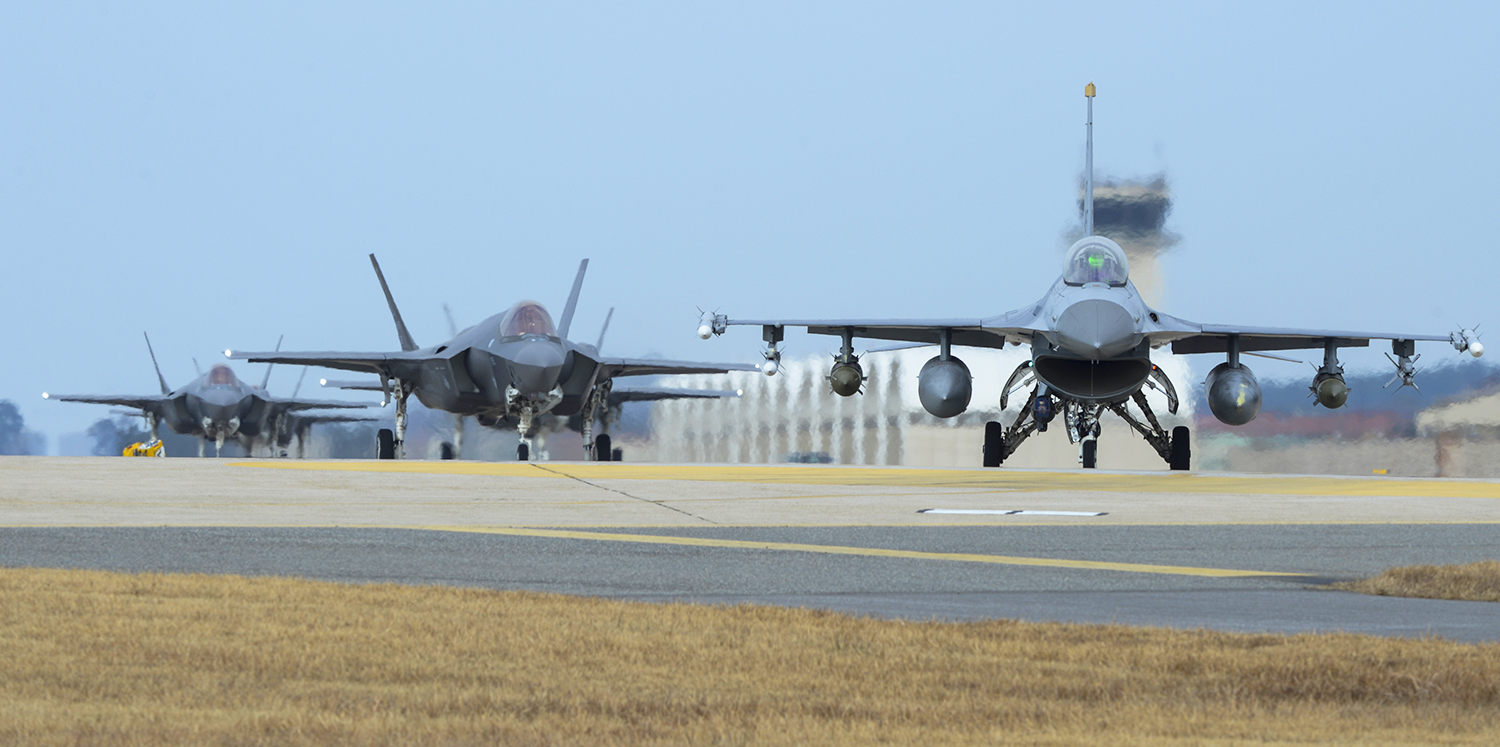On Dec. 4, 2017, military aircraft the U.S. Air Force, Marine Corps, and Navy, along with the South Korean Air Force, began flying mock missions from eight air bases in South Korea – Cheongju, Daegu, Gwangju, Jungwon, Kunsan, Osan, Seosan, and Wonju. The event, nicknamed Vigilant Ace 2018, is the latest iteration of an annual exercise, but this is the first time six U.S. Air Force F-22A Raptor and six F-35A Joint Strike Fighter stealth fighters, as well as U.S. Marine Corps F-35Bs, will take part. Those additions come after months of provocative North Korean ballistic missile tests, including the fearsome demonstration of the Hwasong-15 intercontinental ballistic missile (ICBM) in November 2017, as well as the country’s reportedly successful test of a thermonuclear weapon two months earlier.
