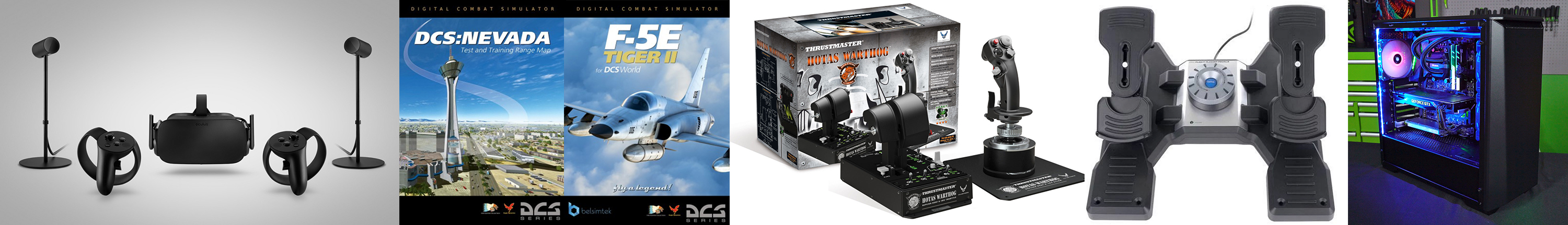 The ultimate home air combat simulator package:Oculus Rift, Digital Combat Simulator World—Nevada Test and Training Range Map, Thrustmaster Warthog HOTAS, Rudder Pedals, and an Oculus ready gaming PC with a powerful graphics card (Tyler’s recommendation)