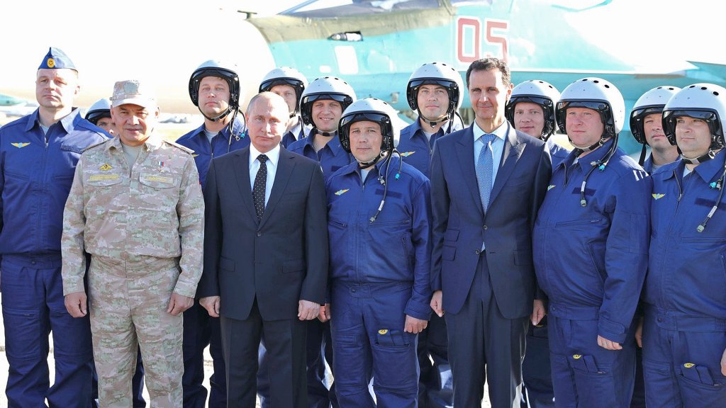 Back in June 2017, Assad had made another very public visit to the base, a particularly visible display of the Russian-Syrian alliance. This latest surprise appearance was clearly a Putin-focused affair to celebrate Russia’s successes and at one point a Russian official appeared to prevent Assad from sharing the Russia’s president limelight in front of the cameras.