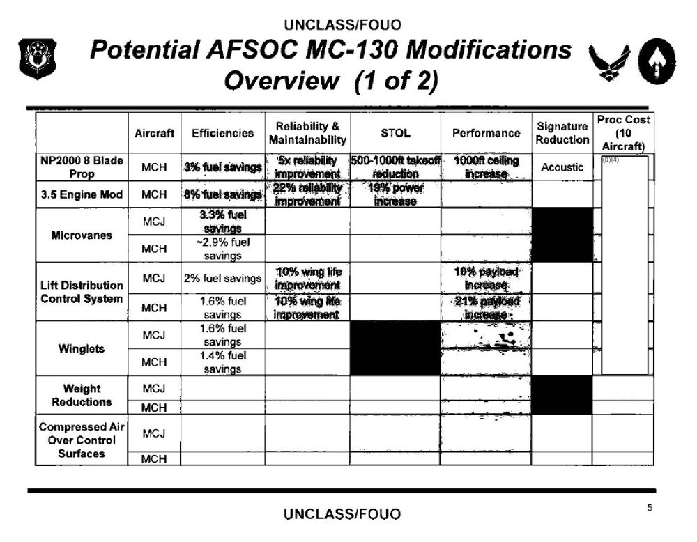 Though there would be a “high initial cost,” Air Force Special Operations Command estimated adding the NP2000s would have resulted in a three percent fuel saving across MC-130H operations, reduced the aircraft’s take-off run by between 500 to 1000 feet, increased its ceiling by 1,000 feet, and provided a five percent increase in reliability. The 3.5 Series engines could have led to an eight percent fuel savings and a more than 20 percent improvement in aircraft reliability, along with nearly 20 percent more thrust.