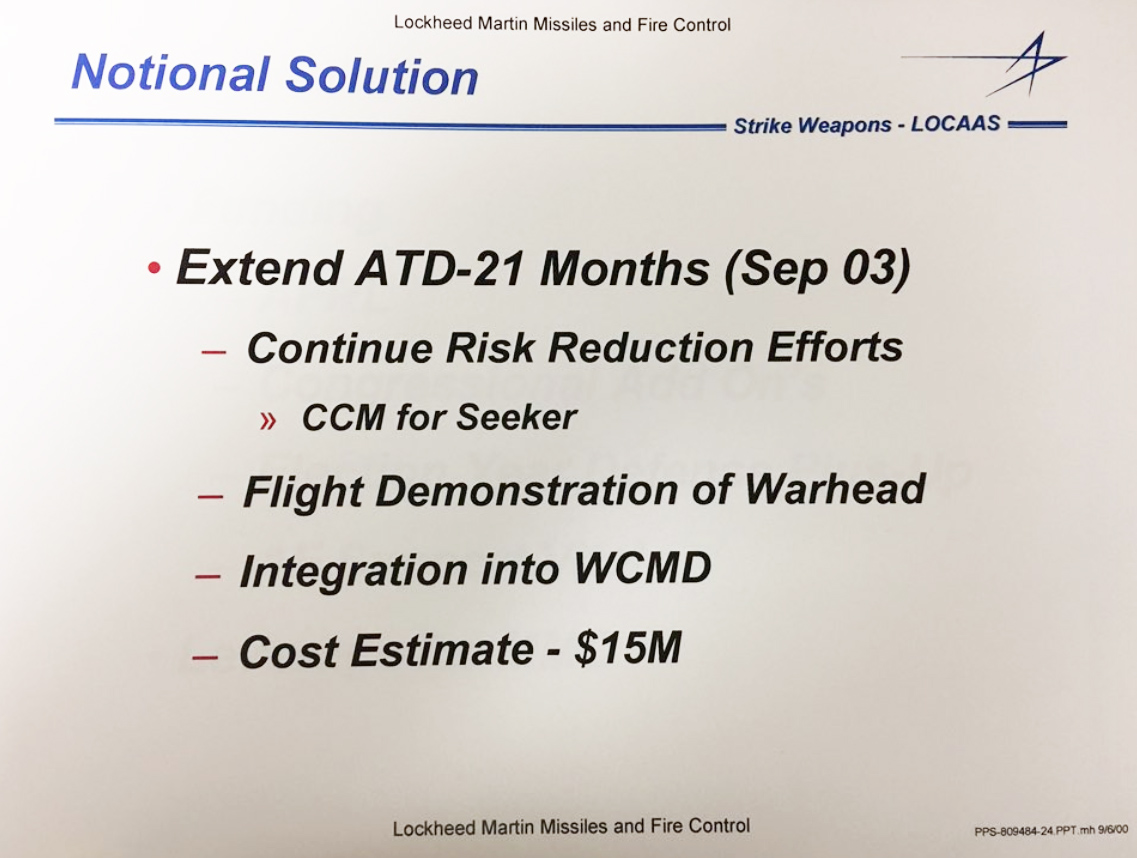 Low Cost Autonomous Attack System, better known as LOCAAS, was a progenitor of the swarming unmanned concepts and autonomous standoff munitions technology we see today.