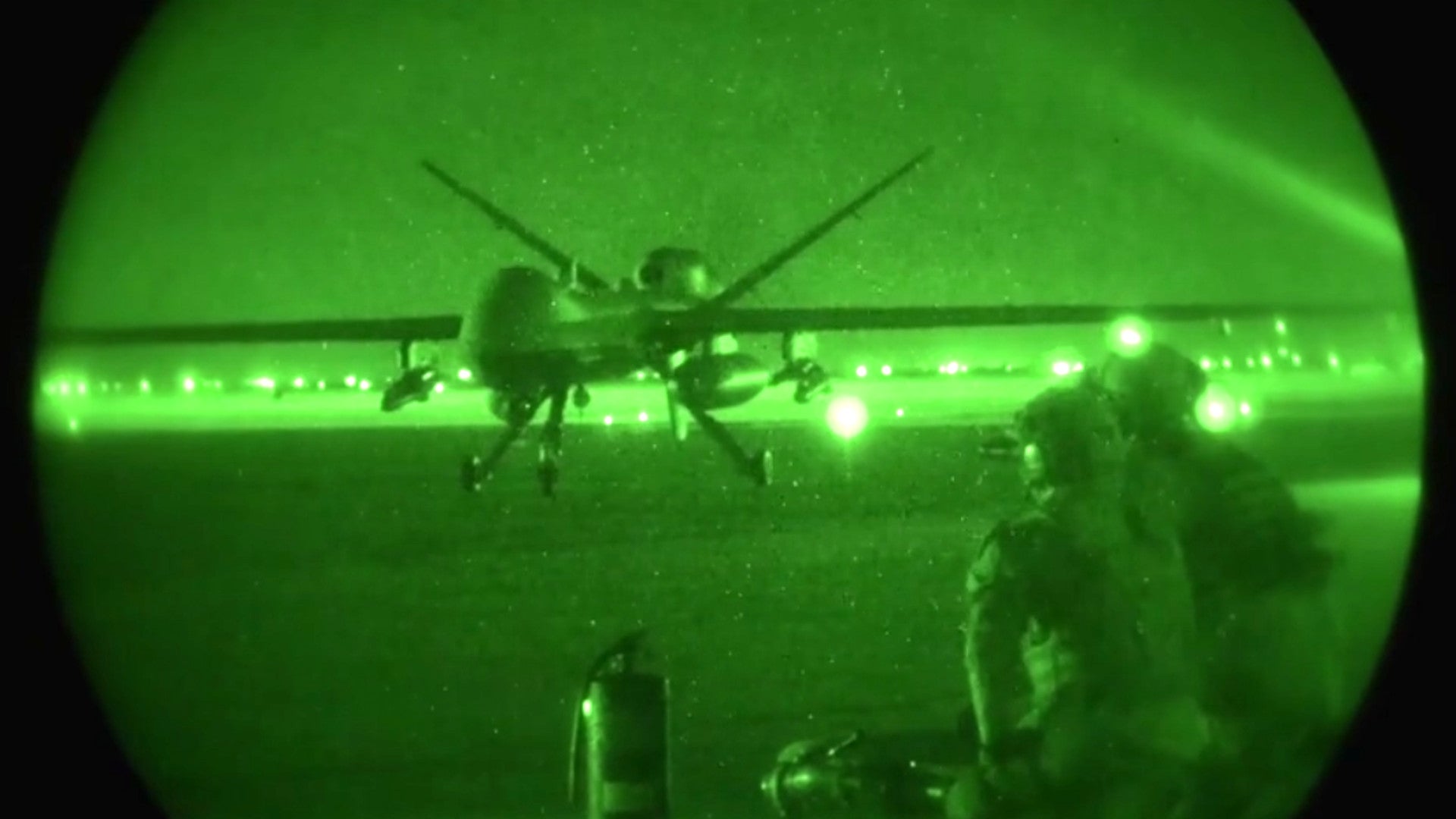 Unfortunately, there is no description to go along with this particular clip, which public affairs personnel or other airmen filmed using a night vision camera, or audio. It’s not hard to understand what is going on, thankfully.