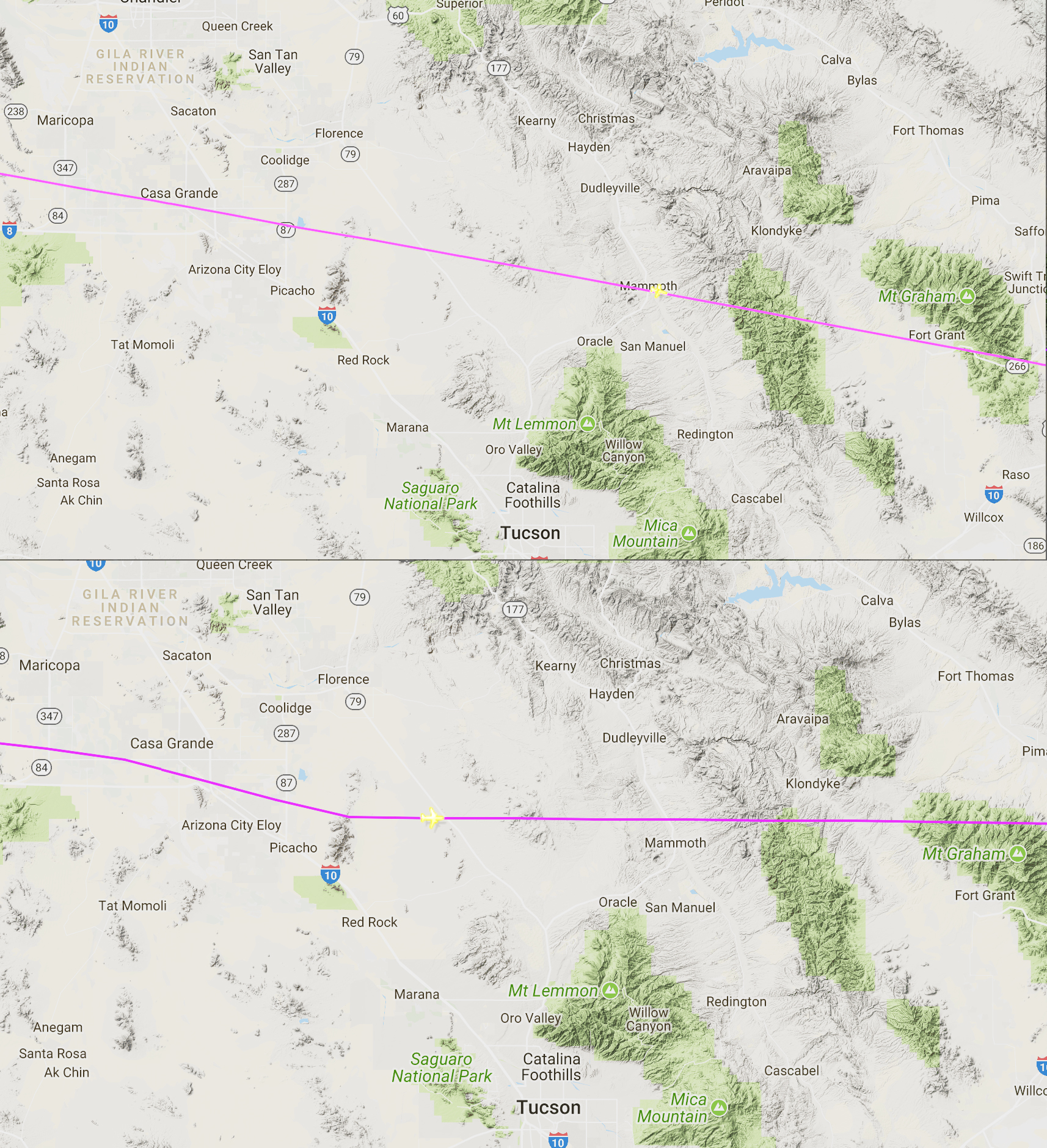 A series of strange events occurred high up in the flightlevels above Southern Arizona on February 24th, 2018. Between roughly 3:30pm and 4:15pm local time, N71PG, a Learjet 36 belonging to Phoenix Air, and American Airlines Flight 1095, an Airbus A321, had independent close encounters with a strange craft flying at around 40,000 feet. The planes were flying east at about 37,000 feet between the Sonoran Desert National Monument and the New Mexico border when the incident took place.