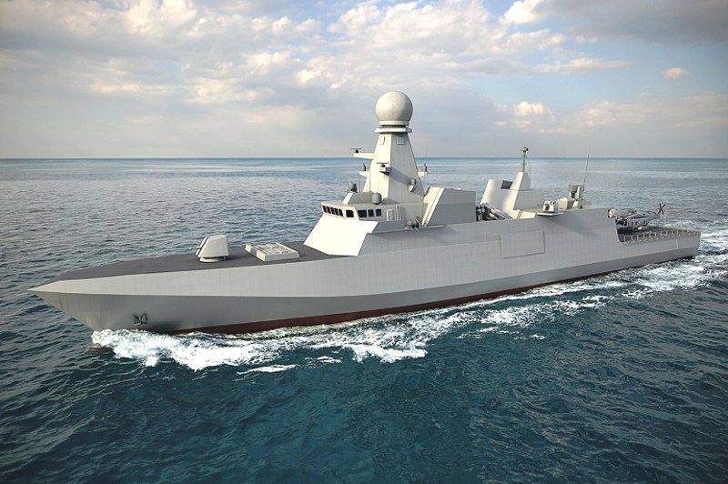 The model Fincantieri showed of the ship at DIMDEX indicated that it would also have a secondary three dimensional search radar. This could be the same European Multifunction Phased Array Radar (EMPAR) found on the Kalaat Béni Abbès or a different unit.