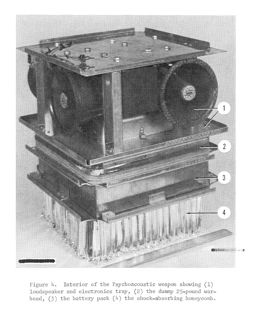 There’s some precedent for this within the U.S. military already, too. during the Vietnam War, the U.S. Air Force actually experimented with air-dropped “psychoacoustic weapons,” which were speaker boxes with recordings to either spew propaganda messages or terrifying or distracting noises. These “Screeming Meemies” never progressed beyond the prototype stage.