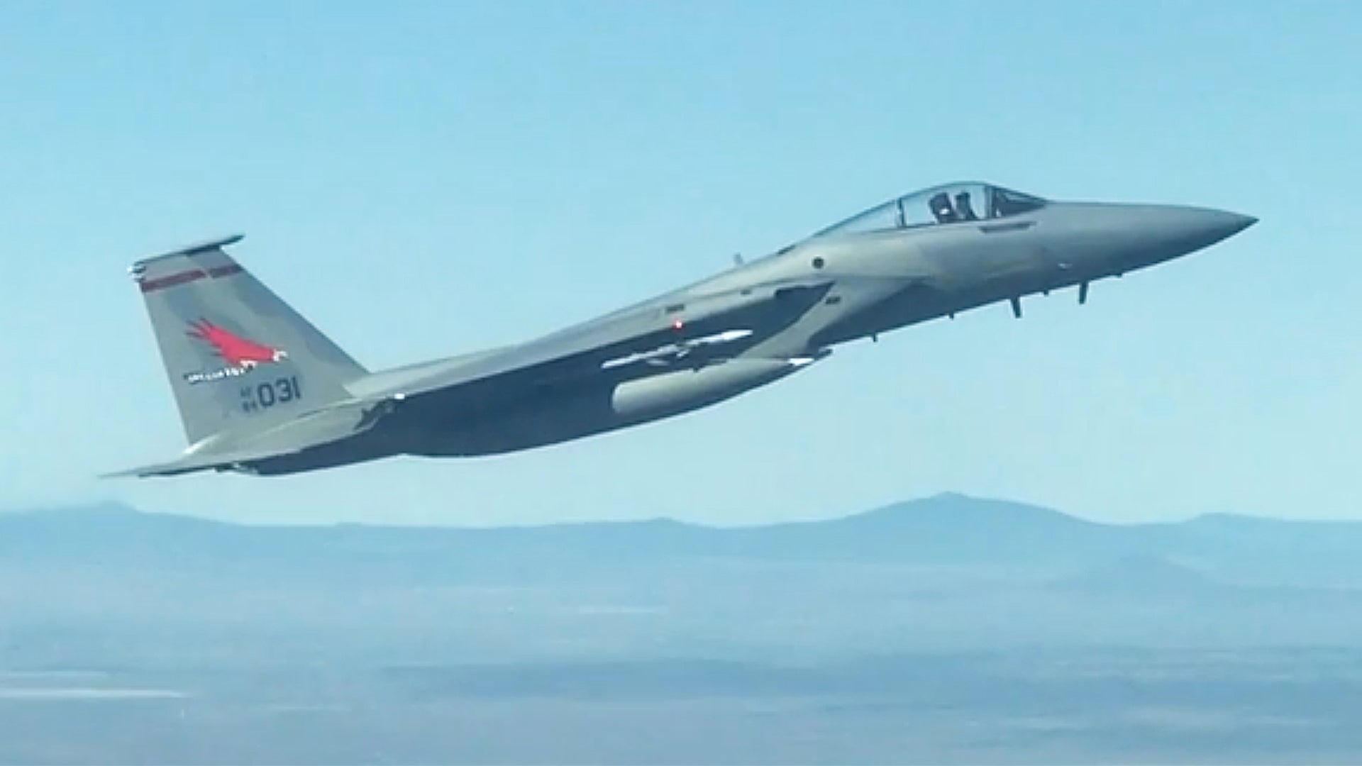 In the video we can see the 142nd Fighter Wing’s fully armed color bird do a slow high-alpha flyby of Michael’s Cessna, before punching the afterburners to maneuver around again. Michael noted to The War Zone that is was really odd hearing the Eagle’s thunderous engine noise inside the Cessna’s cockpit.
