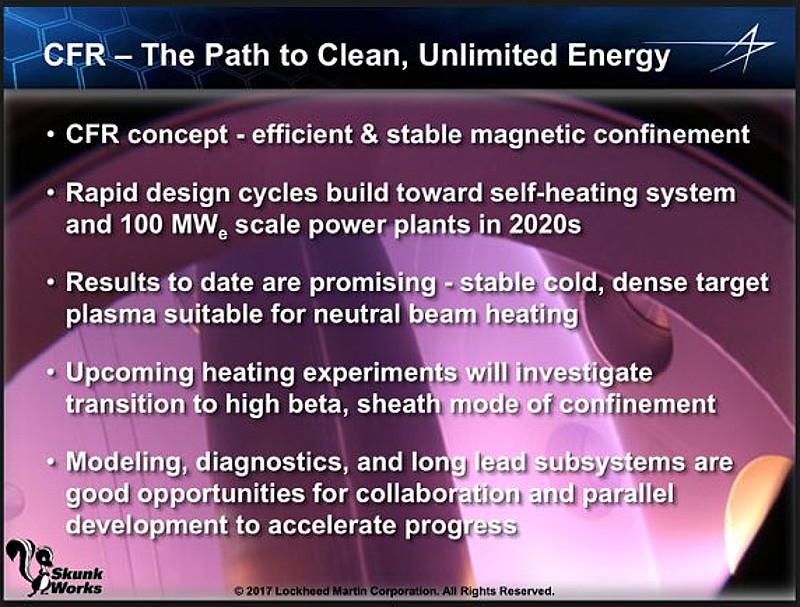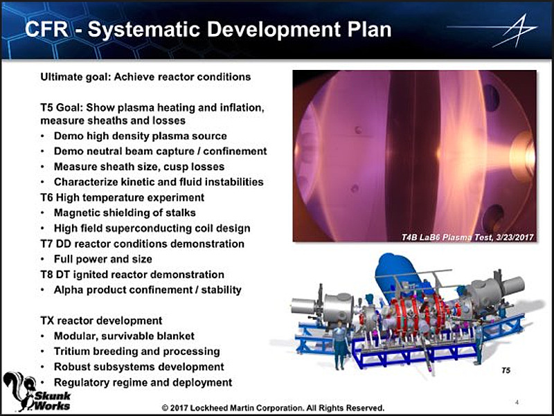 Other scientists in the field have been equally incredulous about this new approach, questioning the basic underlying concept, as well as Lockheed Martin’s aggressive schedule for new developments. In 2014, McGuire said he expected his team would be able to build a working example of the reactor within five years and a practical, production design within 10.