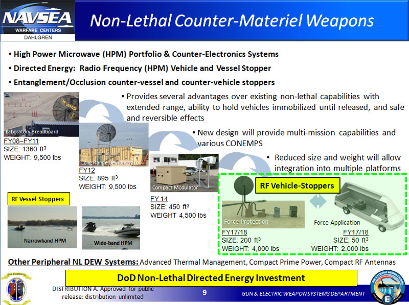 If JNLWD Technology Division can come up with a functional prototype, the benefits are clear. The microwave beam would be a much more capable and flexible option than existing vehicle stopping equipment.