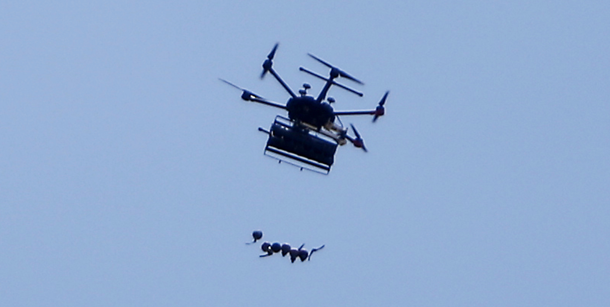 Facing more indiscriminate wildfires as a result of the Palestinian’s incendiary kites, the Israeli Defense Forces came up with a novel countermeasure to a very simple yet vexing tactical problem. They enlisted local drone racers to set up along the border and fly their maneuverable and fast drones into the kites or snag them with fishing hooks to bring them down. The program kicked off officially last Friday and it’s not clear just yet how successful the racers were over the weekend, but video posted on Youtube did show a drone hauling away a kite caught on a hook:
