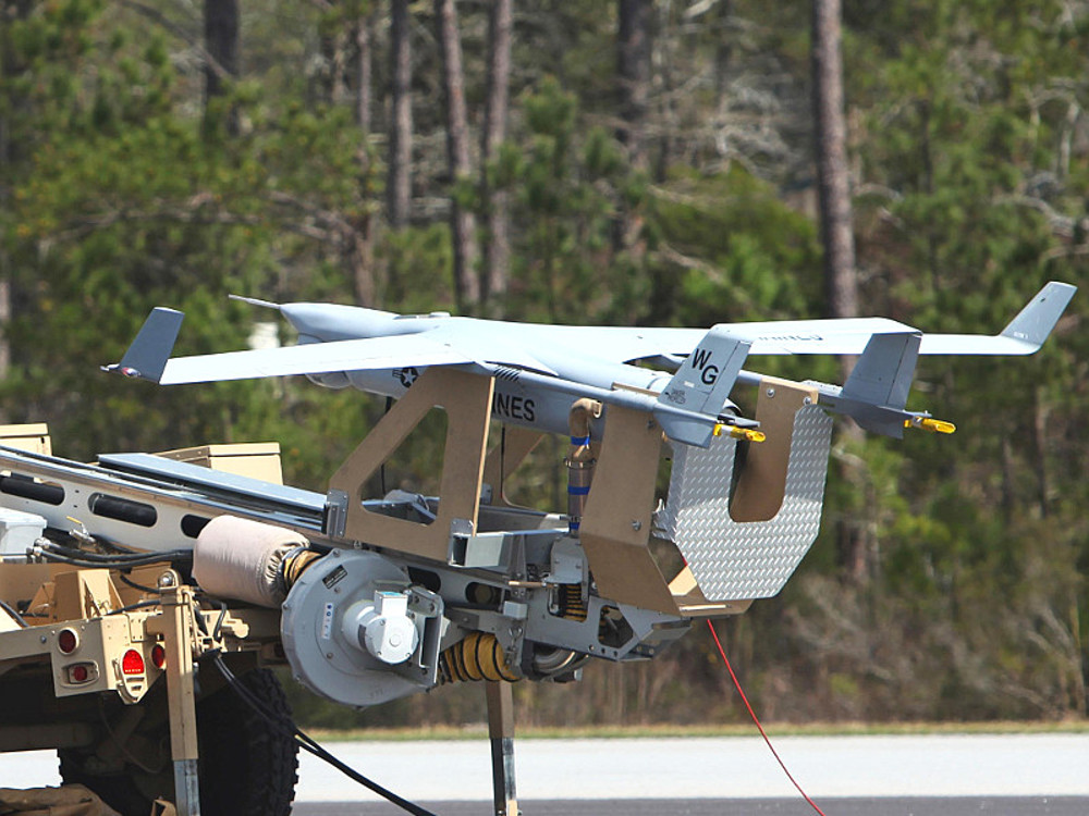 The RQ-21 is also well suited to those types of sites since it uses a catapult to launch the unmanned aircraft and a tethered hook to snatch it out of the sky at the end of its mission. Unlike similarly sized drones, such as the RQ-7, the Blackjack has no need for an actual runway of any kind. The complete system, which consists of five RQ-21s, a launcher, a Skyhook Recovery System, two trailer-mounted generators, and four Humvees with various other necessary components and pieces of equipment, is relatively mobile, as well.