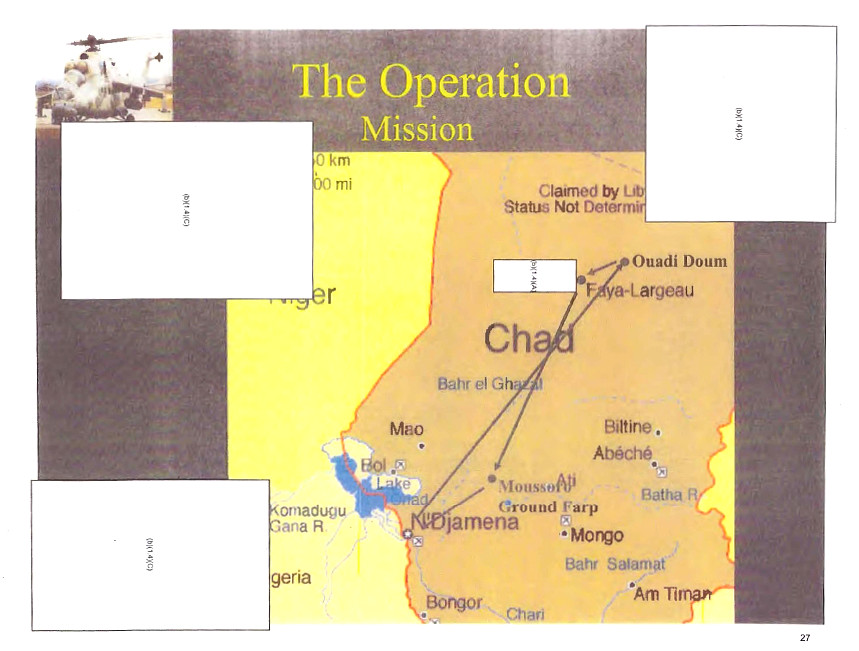 The next day, June 11, the Americans flew nearly 500 miles straight from N’Djamena to the air base, with an escort of French forces, including Mirage F.1 fighter jets. The situation there was tense with reports of increased Libyan activity on the other side of the Aouzou Strip. Months before Gaddafi’s forces had sent his own aircraft to try and destroy abandoned planes, helicopters, and other equipment in the area.