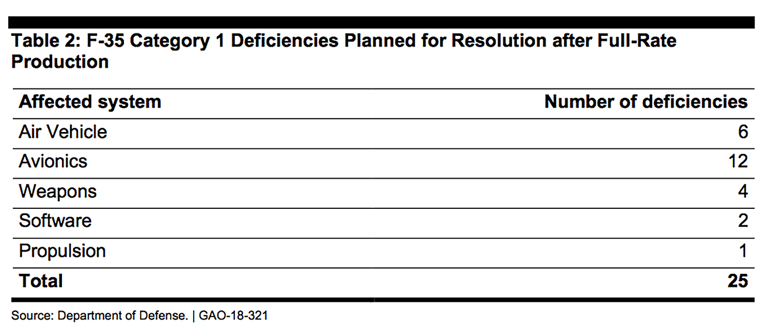 But the GAO report is not all good news. The F-35 still has a massive number of unresolved issues that have no sign of being fixed before the decision to enter into full-rate production is made.