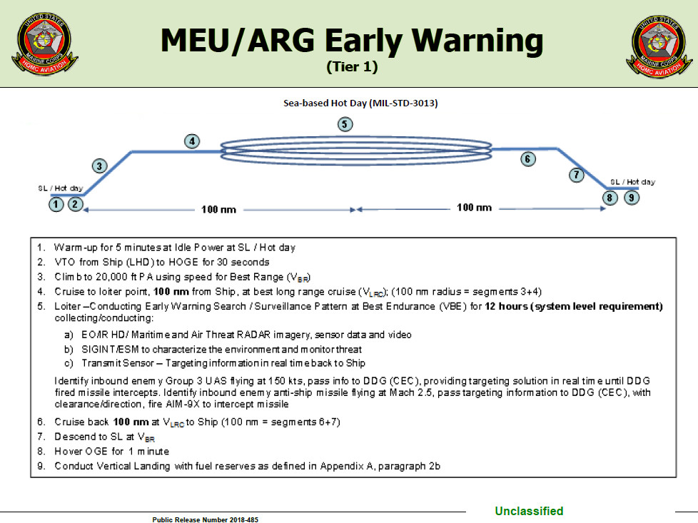 But even within Tier one, the early warning requirement is clearly the Marine Corps’ most immediate priority. At present, U.S. Navy surface forces get this support from the E-2 Hawkeye radar planes, which can only fly from the big deck of a full sized carrier or bases on land.