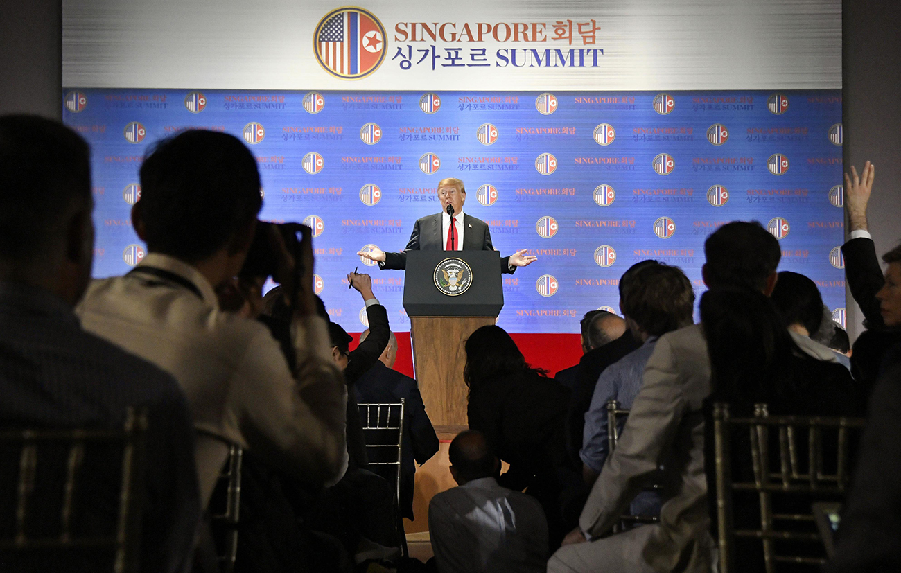 This was a dramatic shift in tone from Trump’s open threats of “fire and fury” in 2017 and was a theme that ran through other parts of his post-summit press conference. Instead of bringing up the size of America’s nuclear arsenal or otherwise bragging about U.S. military’s capabilities, the president highlighted how devastating a war on the Korean Peninsula would be for all parties involved – something almost every reasonable observer of the situation has pointed out for months.