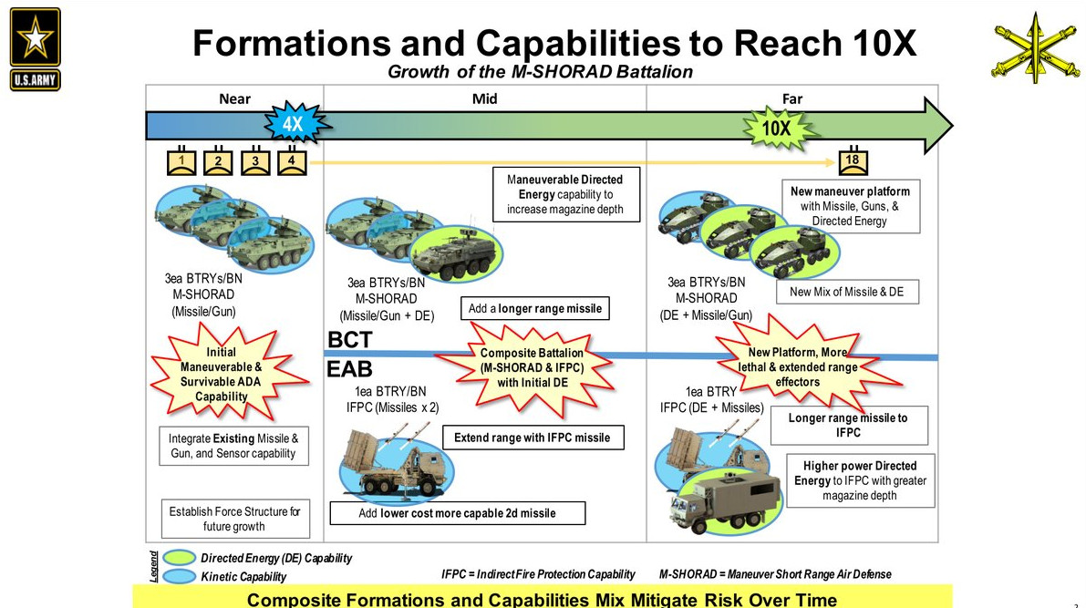 The Army is also looking to add directed energy weapons to various units to disable or destroy certain threats, as well as improve its larger, longer-range air defense capabilities. These, along with MHTK and other systems, could potentially get blended together on the same platform for added flexibility against a wide array of targets.