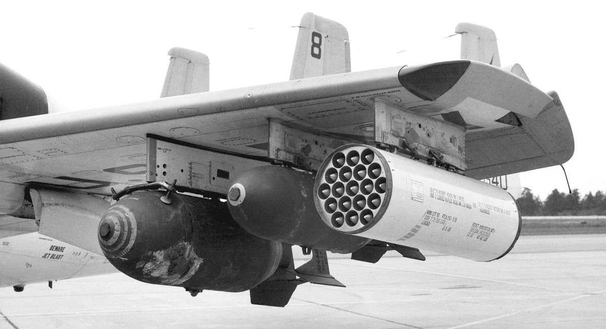 The possible bomb loads similarly included World War II-era types still in U.S. military inventory, as well as the more modern low-drag Mk 80-series types. The Army also evaluated the OV-1’s ability to carry napalm tanks, incendiary cluster bombs, and flare racks, the latter being useful for nighttime attacks.