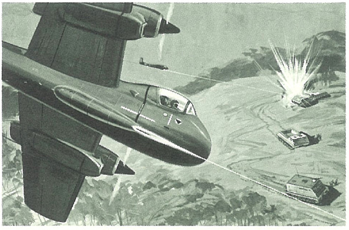 A piece of contemporary promotional art from the Ryan Aeronautical Company depicted one of the planes carrying an experimental anti-radiation missile, presumably to take on hostile air defenses. However, this seems to have been a particularly optimistic understanding of the type’s capabilities, even against contemporary threats in the 1960s.